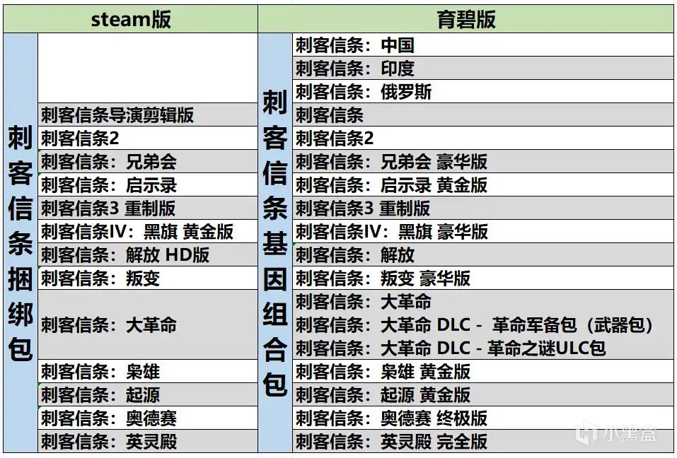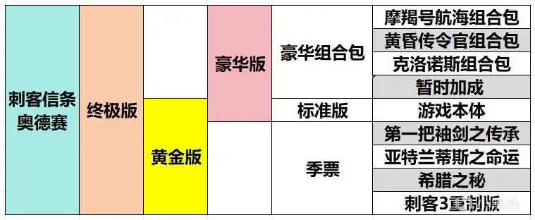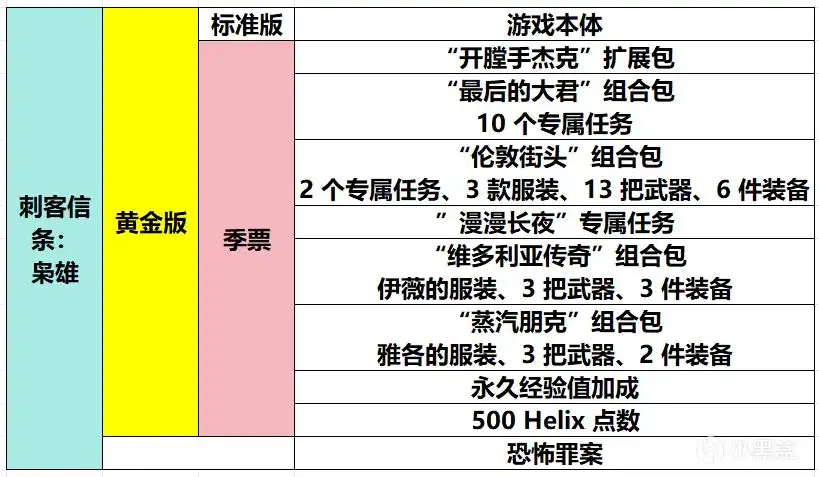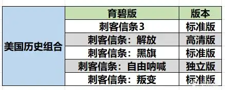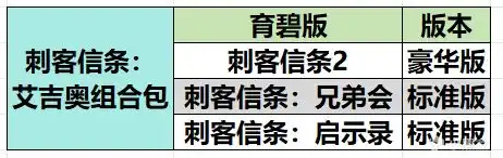 育碧版:目前唯一建议捆绑包,性价比最高,内容最全,不过购买后仍需单独购买恐怖犯罪DLC两部剧情都相对薄弱,但是作为老刺客画面最好的两部还是整体内容还是挺不错的,枭雄也是除了没有海战之外玩法最丰富的一代了(伦敦蜘蛛侠是也)