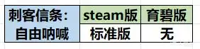 steam、育碧版本内容整体基本一致,steam版两件衣服需要自己手动领取
