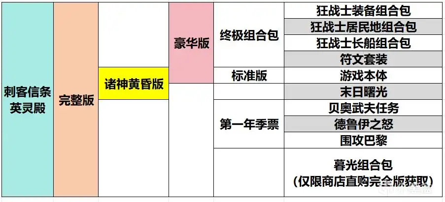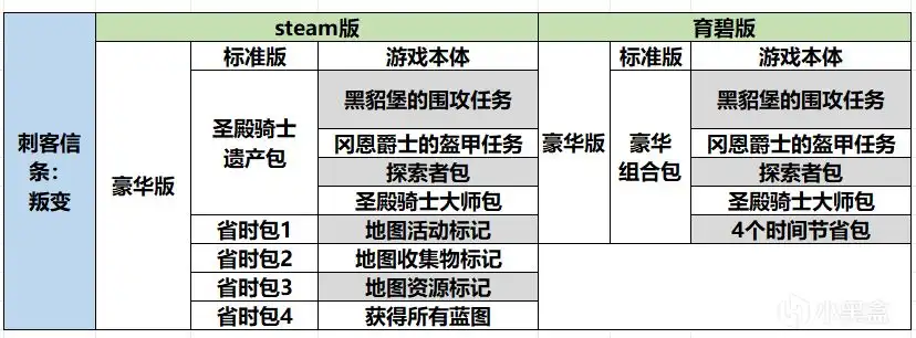 steam、育碧版本内容一致,不过具体划分不同育碧版豪华组合包不单独售卖,只能通过购买豪华版获取
