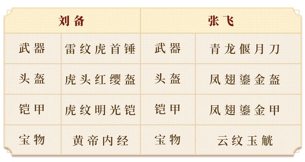 此处张飞可选择反击类套装。刘备可选择生存类套装(提升和其他队伍组队的通用性),也可以选择和张飞一样的装备。