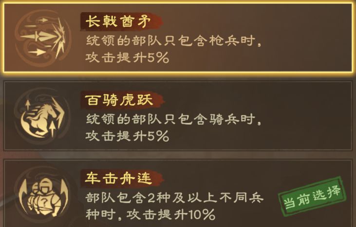 张飞天赋如下,由于刘备张飞只能选择枪兵,选择“长戟酋矛”。