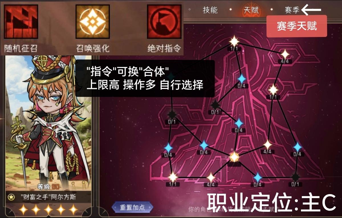 ★天赋1唤魔1词条1魔法神1→随机征召冷却为0→能量够可连续召唤