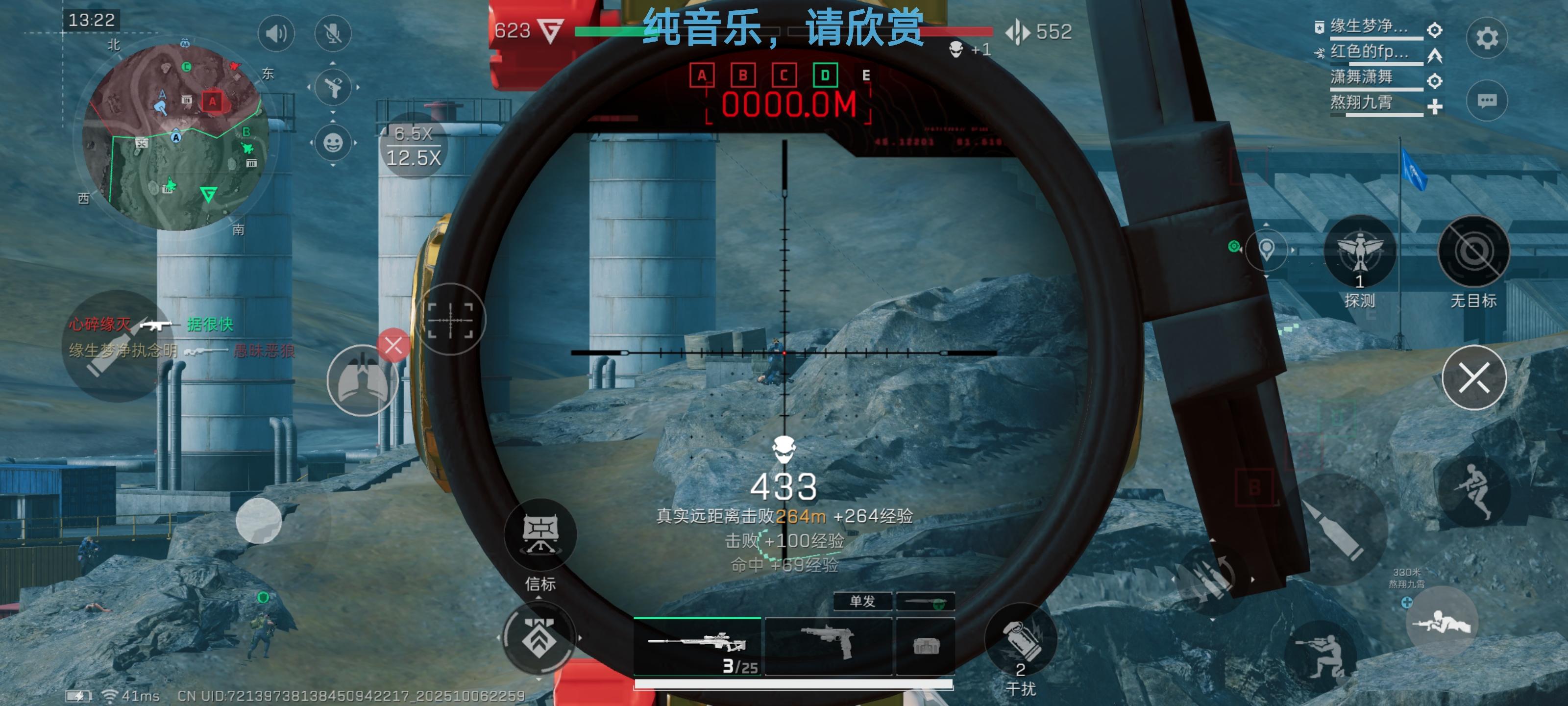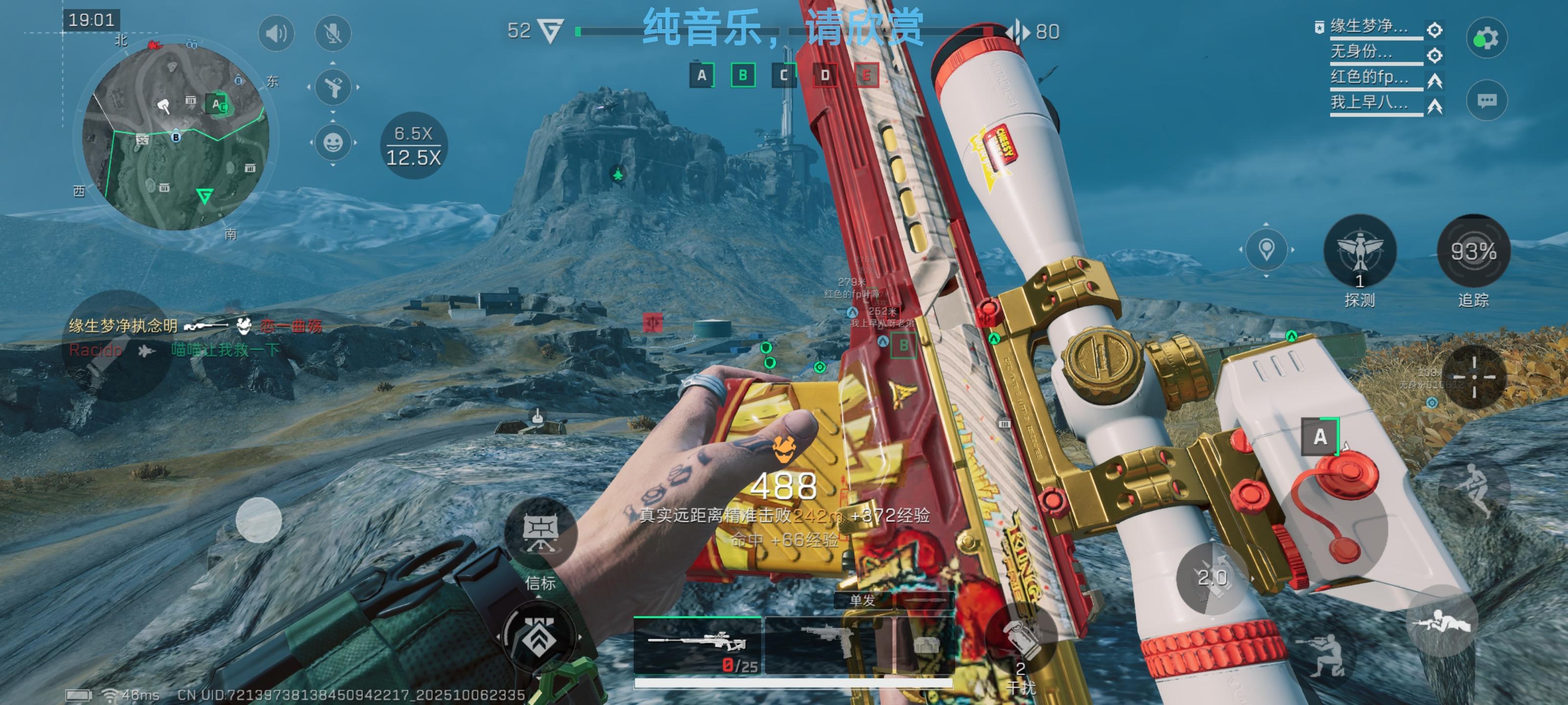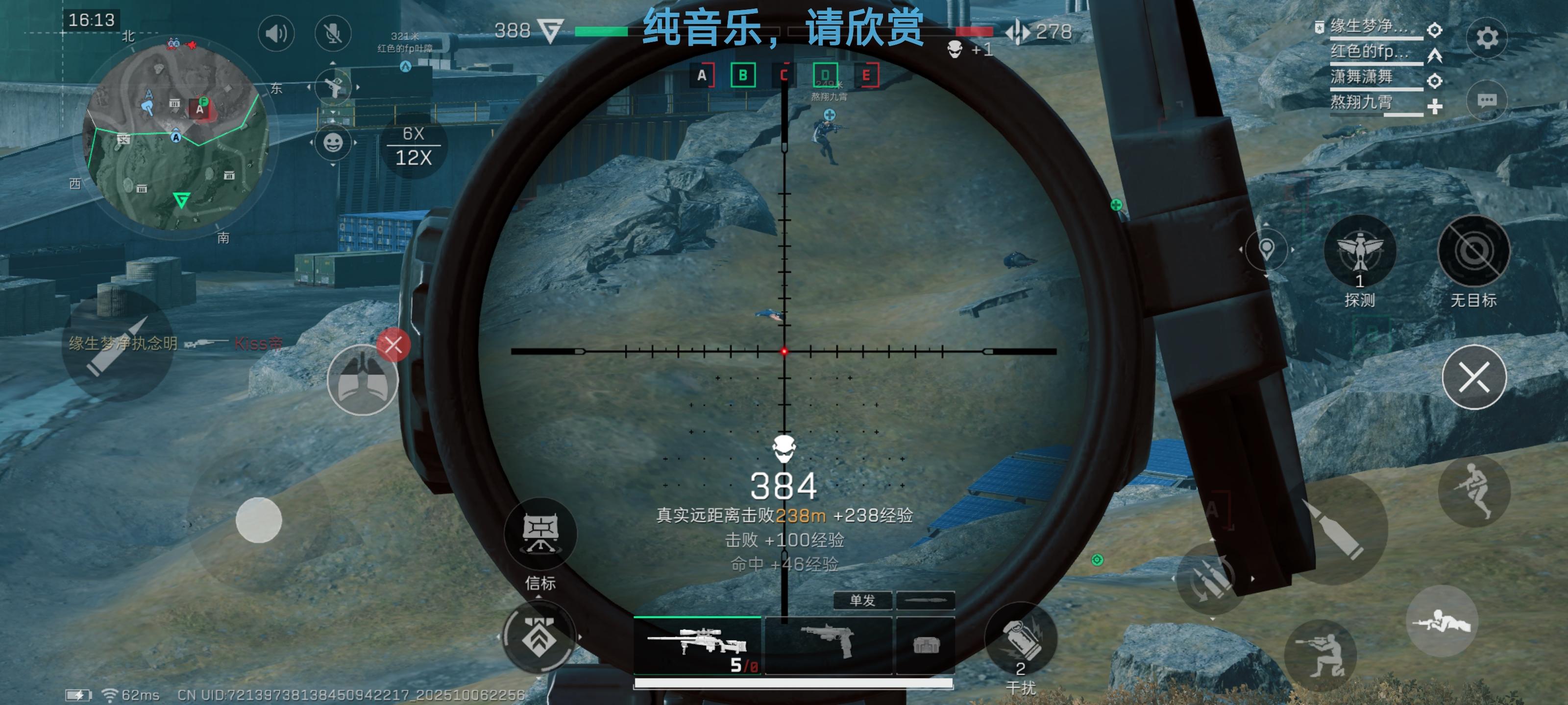 今晚大战场成为了狙神,一连数把几十个头都是200米开外,最强的一次是322米一个头,还有299米开外一个头