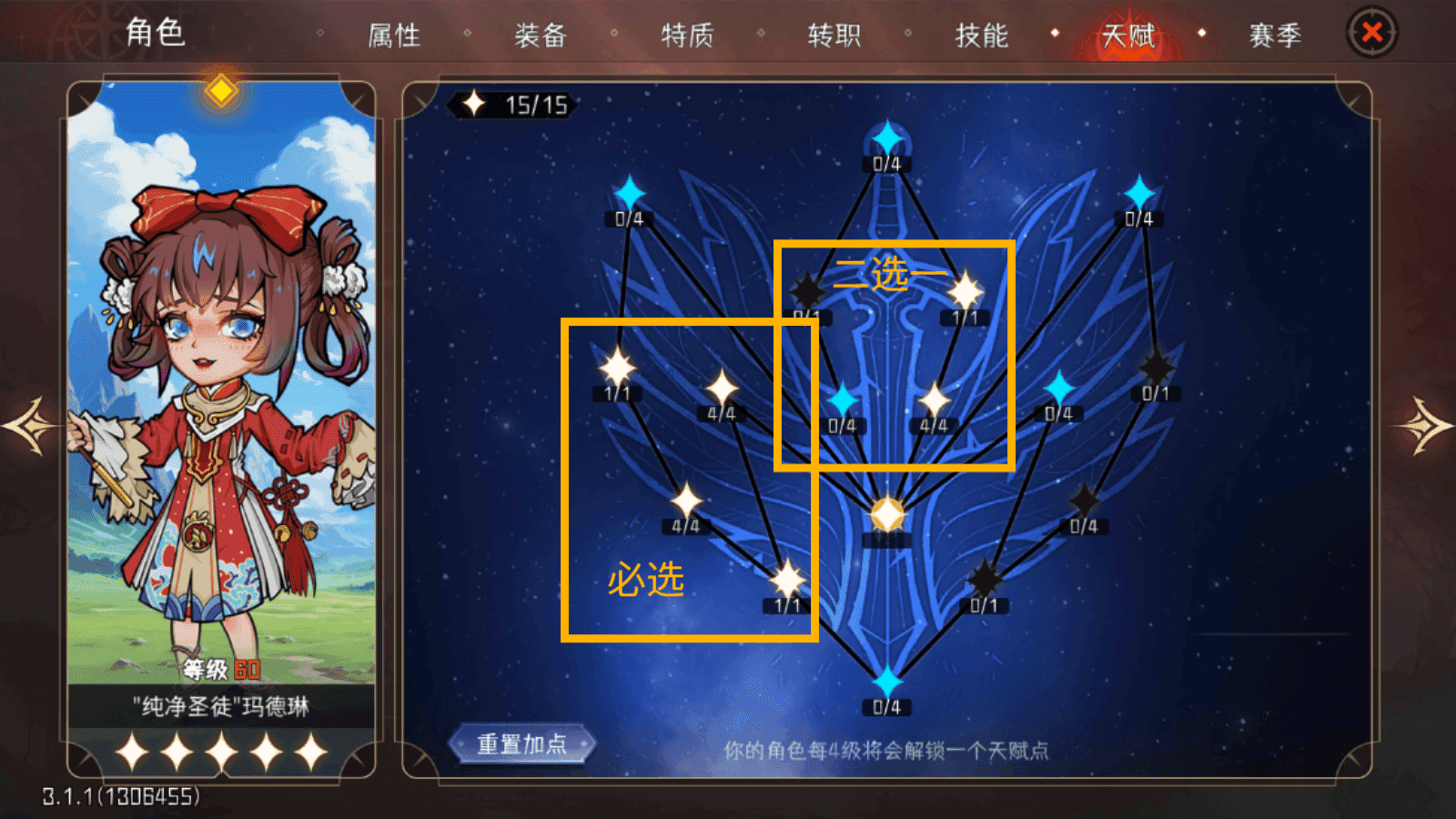 我的加点仅供参考,请按照绿字内容和阵容选合适天赋