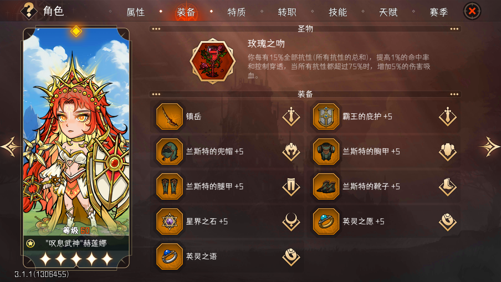 圣物:玫瑰之吻(根据全部抗性提供命中、控制穿透和吸血)