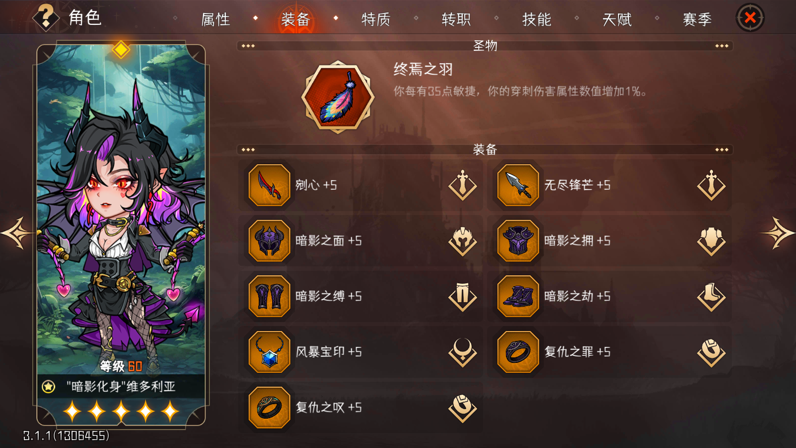 套装:暗影套装(隐身,并且隐身时提供30命中率、30暴击率和60%增伤)