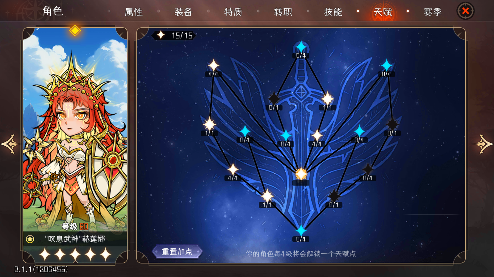 赛季词条:引力护体、引力弥漫(回合开始时,若存在敌人距离大等于5,+1技能范围)、引力易伤(普攻或单体技能让目标受到伤害提高60%)