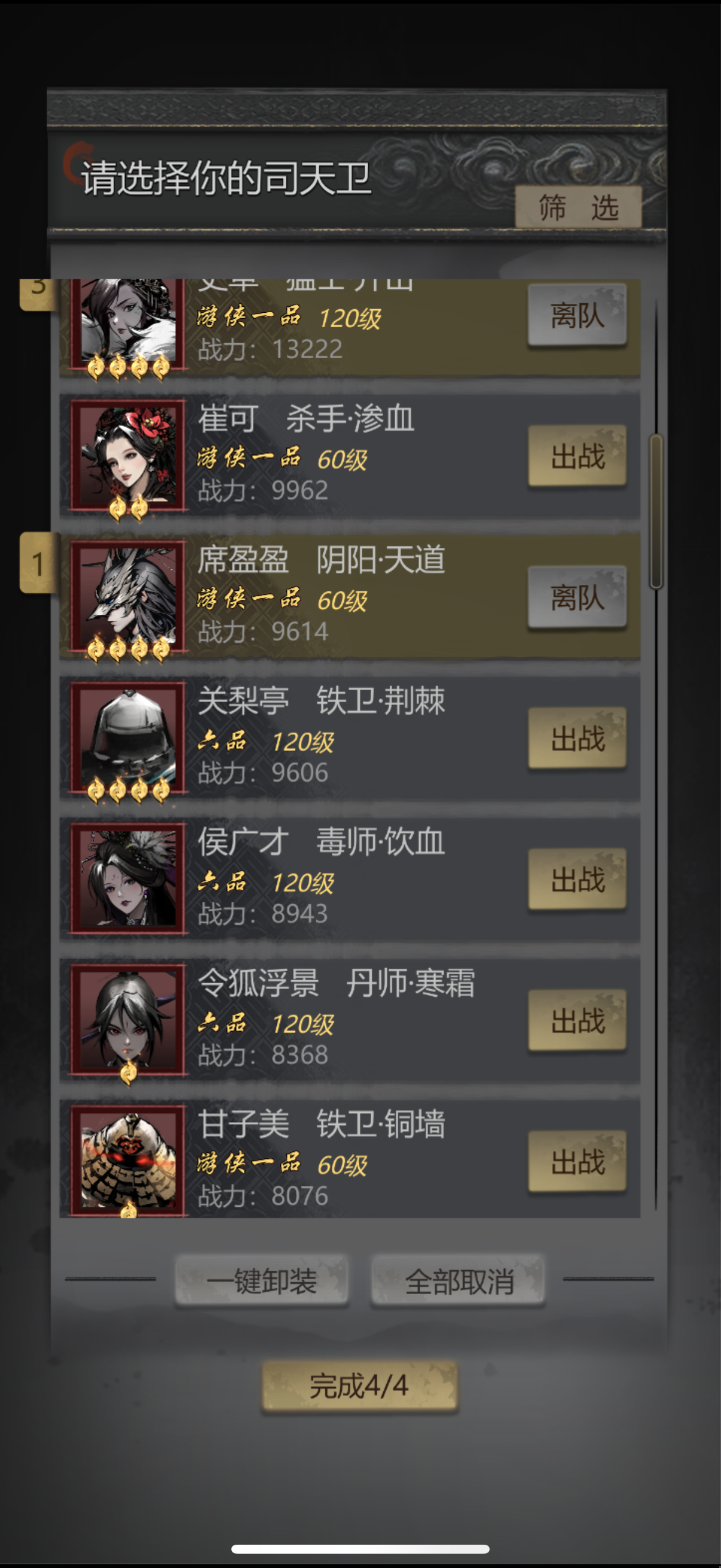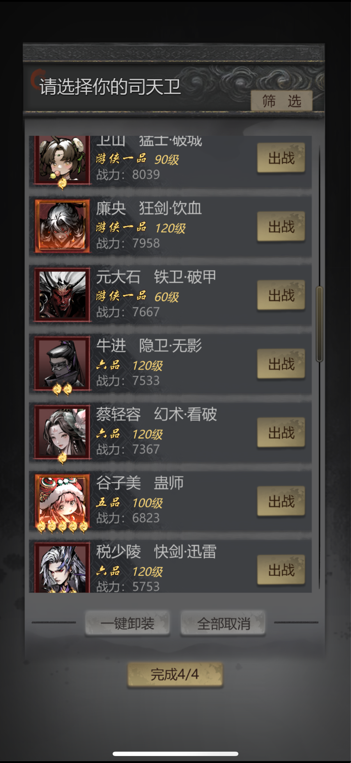这周应该都能轻松过困难二了,除了驯弓要游侠别的6品就够,我的练度如图,人懒,配置不需要这么高。