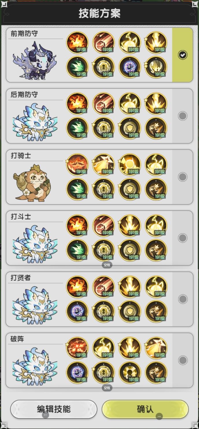 技能搭配变化不多,万变不离其宗。核心思路是:输出够了补防守,输出不够加输出。