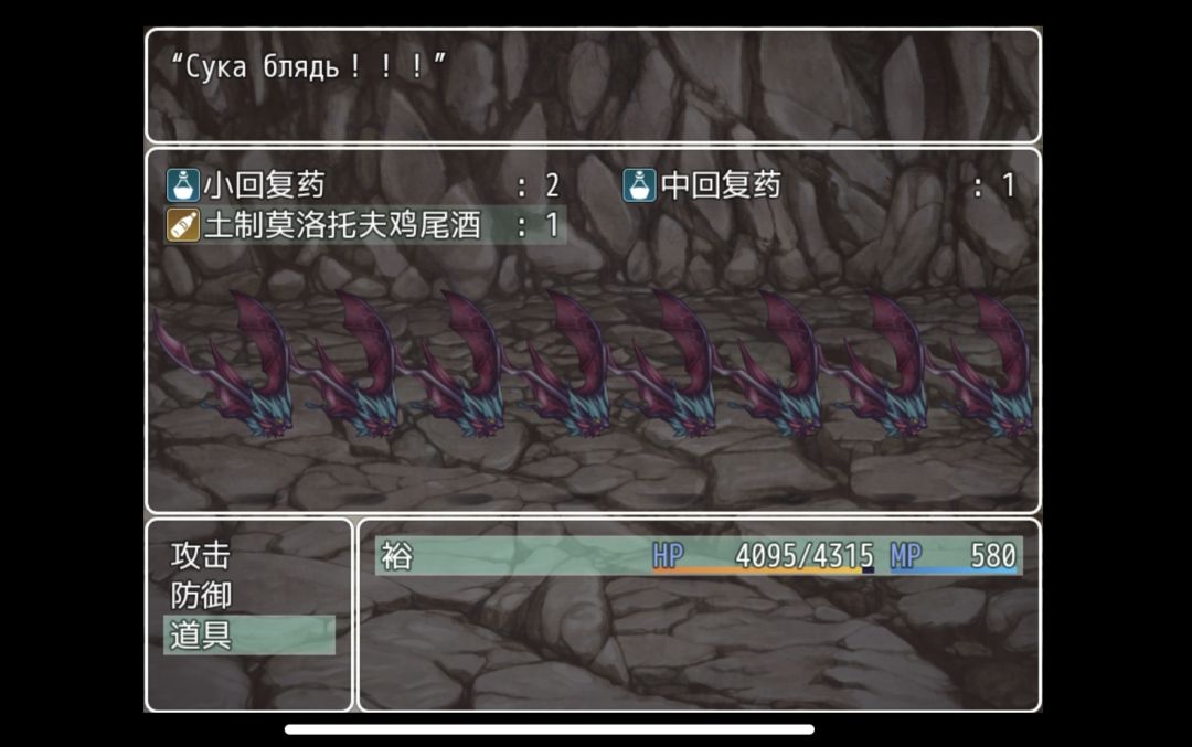 根据对话,需要用鸡尾酒 烧蝙蝠,打开攻击界面后,返回(双指单击)选择道具