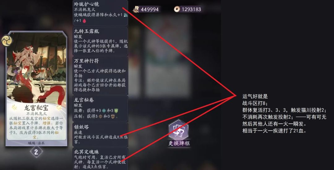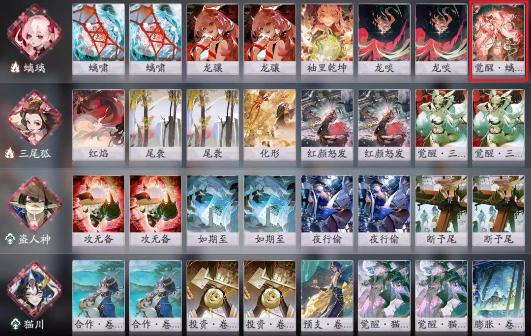 举个例子,我只带了一张螭璃觉醒。我更倾向于提速,把每个回合的瞬发、鬼火拉满打足伤害,弥补红颜怒发不来牌、撕牌质量太差的问题。