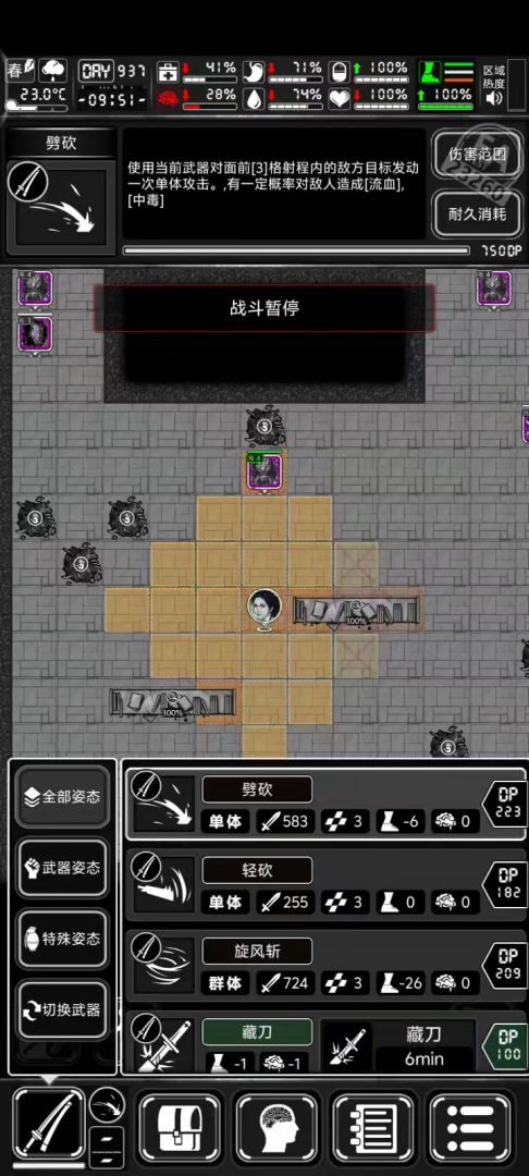 接下来演示一下打法,低天赋的碳刀和极开做演示,能碳刀砍死的尽量碳刀