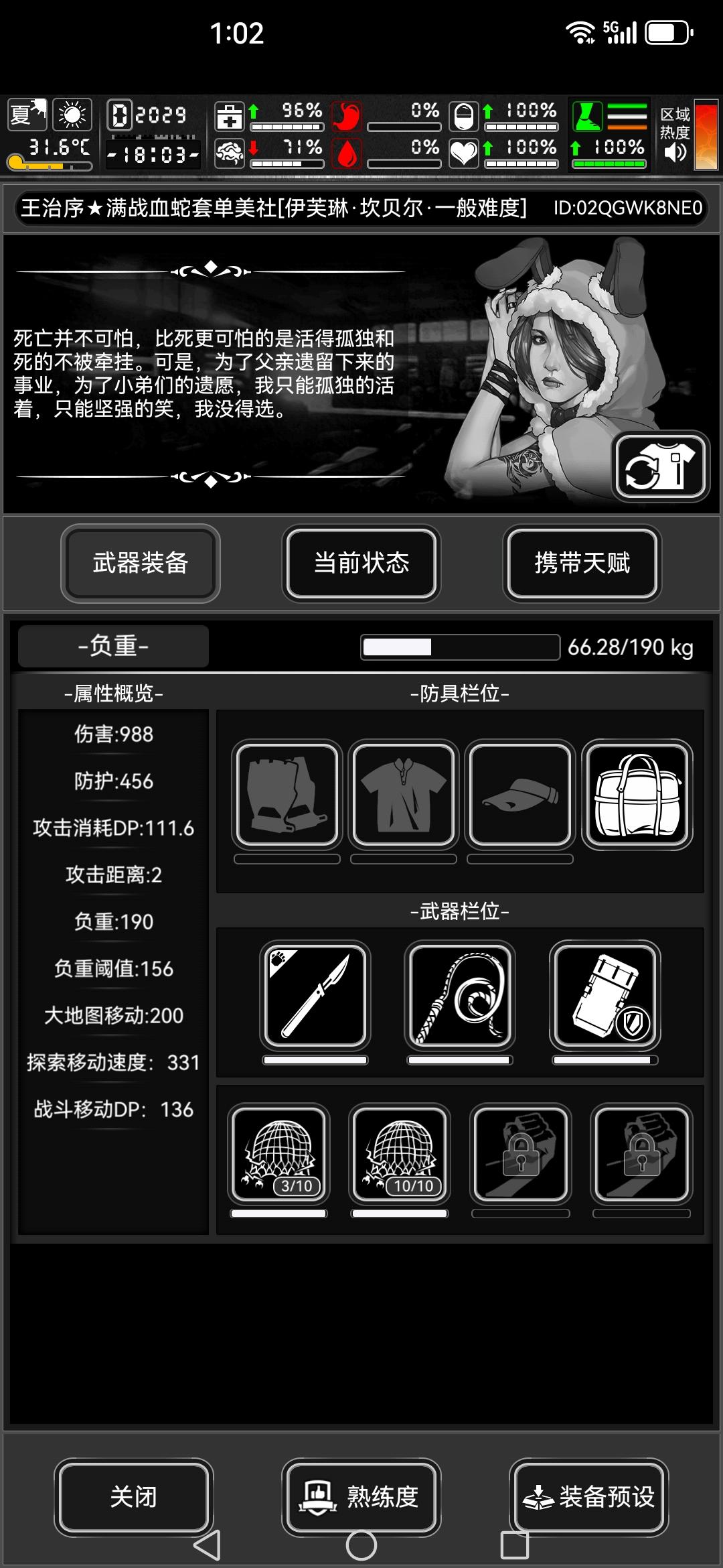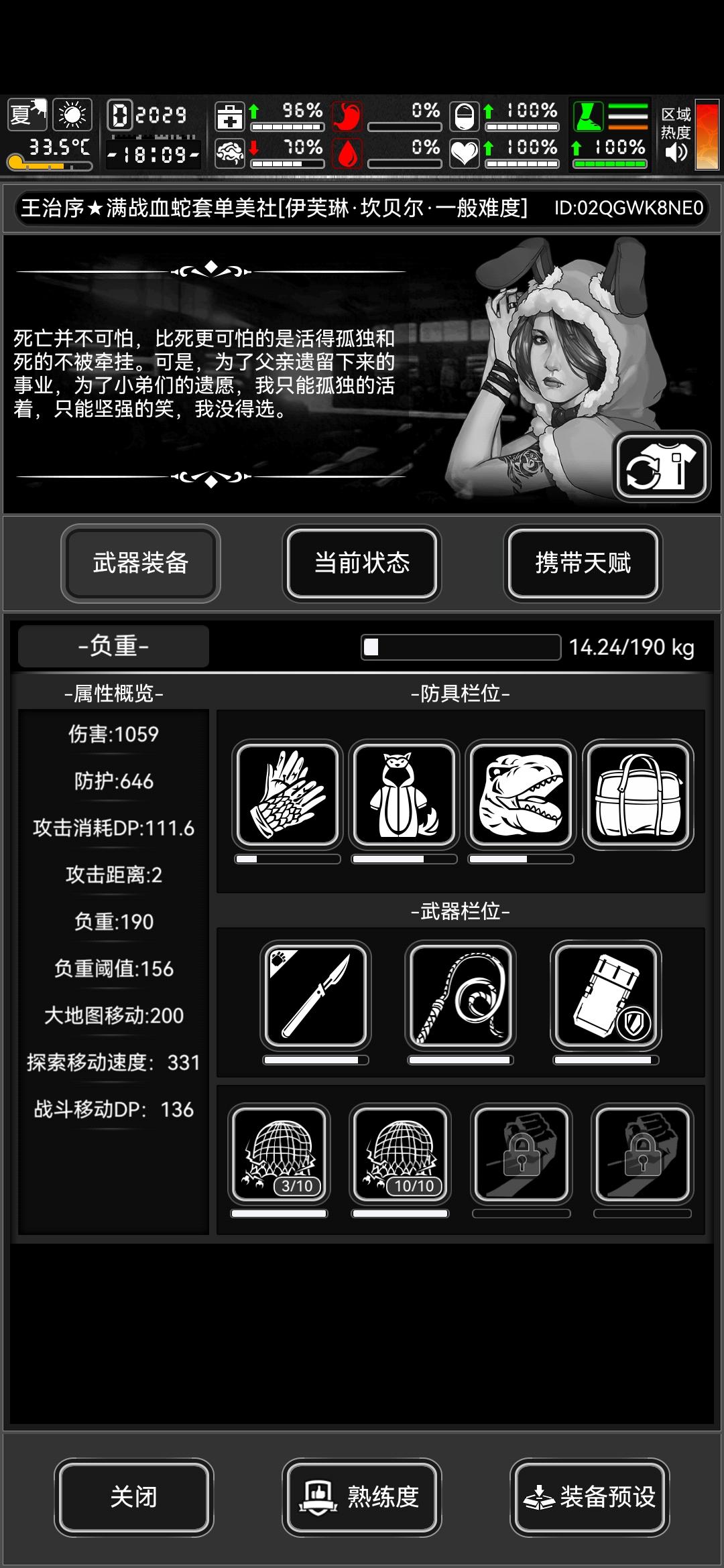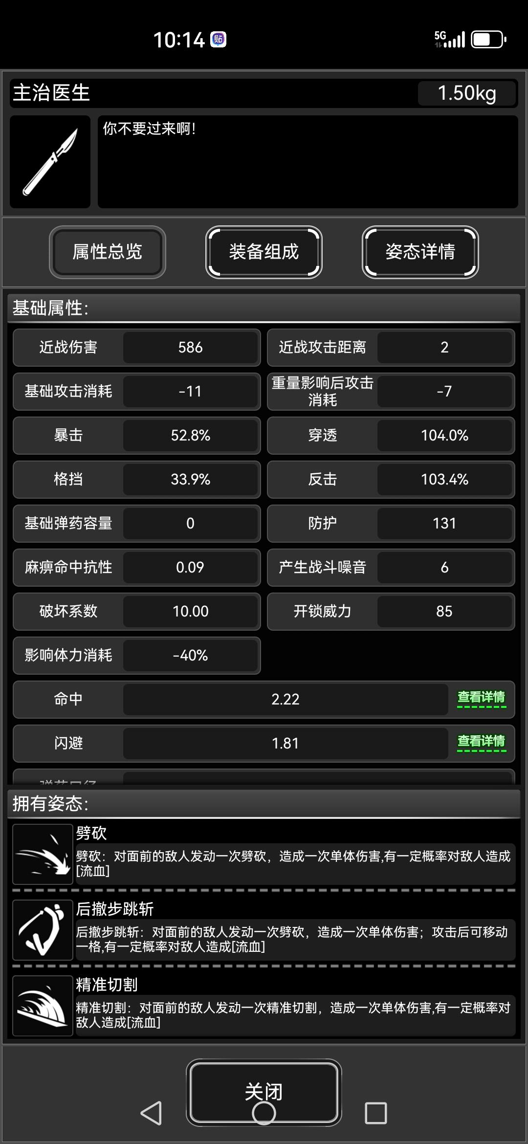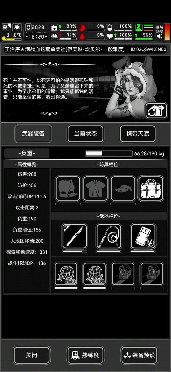 不过总结,因为耐久低,格挡低的缺点。虽然练满了,面板属性还凑合,差不多和d马相当。但是因为自身只有两格攻击距离,基本上跟尸潮无缘。