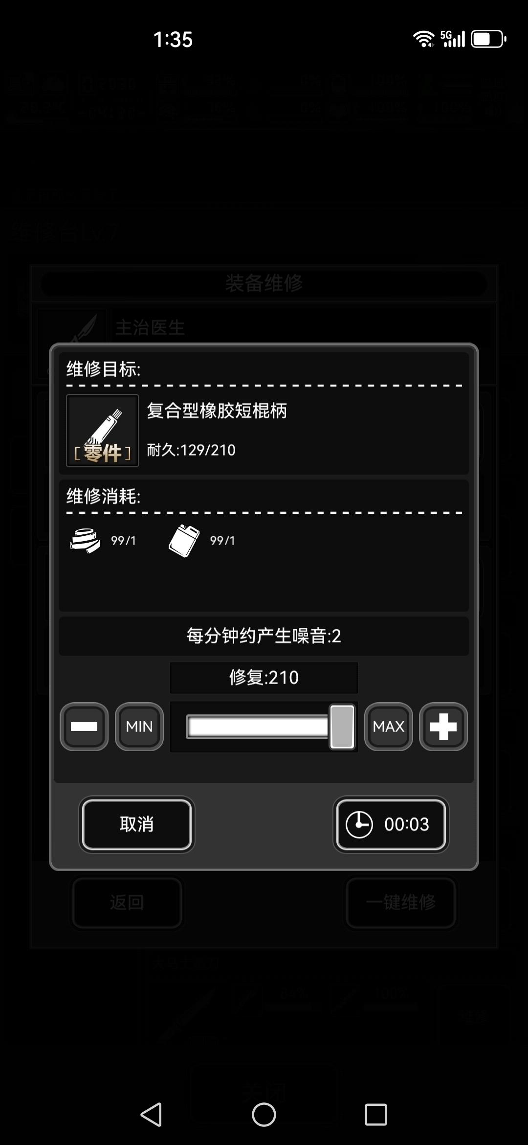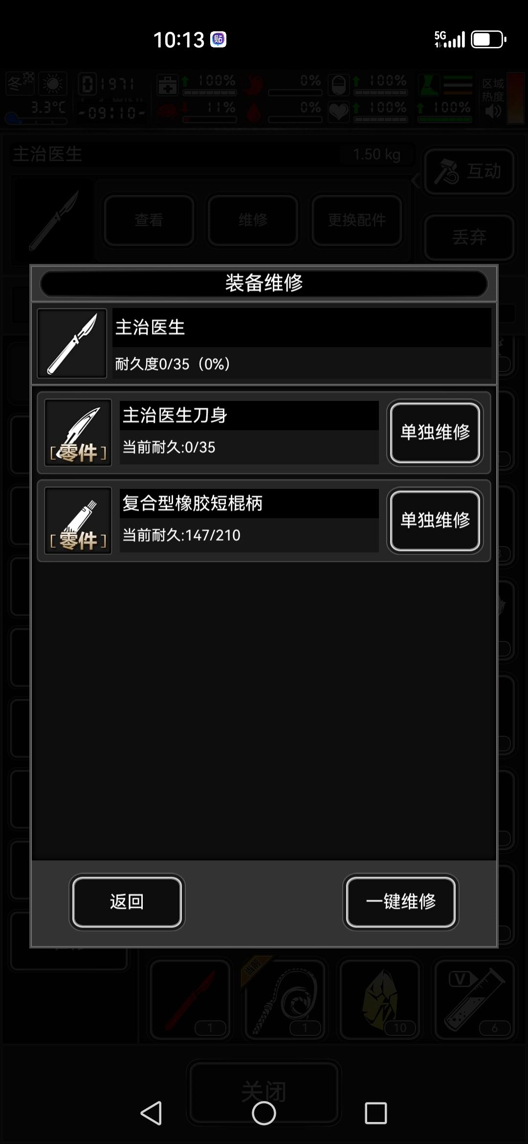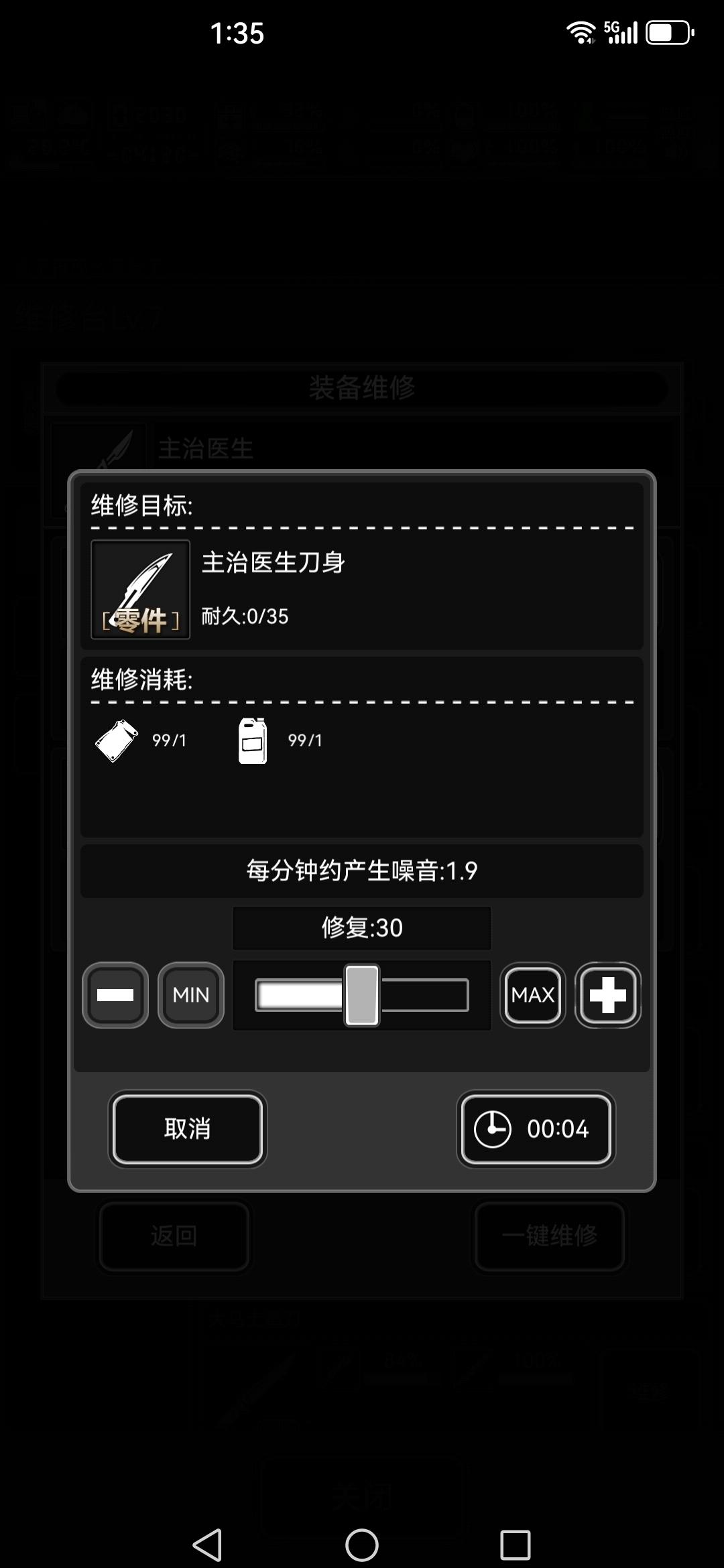 我们能看到主治医生台修,修复30耐久也只需要一个铁板。柄的维修成本也可忽略不计。基本上消耗完了,一次刀身耐久,也只消耗这么基础柄的一半耐久。即便耐久较低,这台修成本也算很不错的了。
