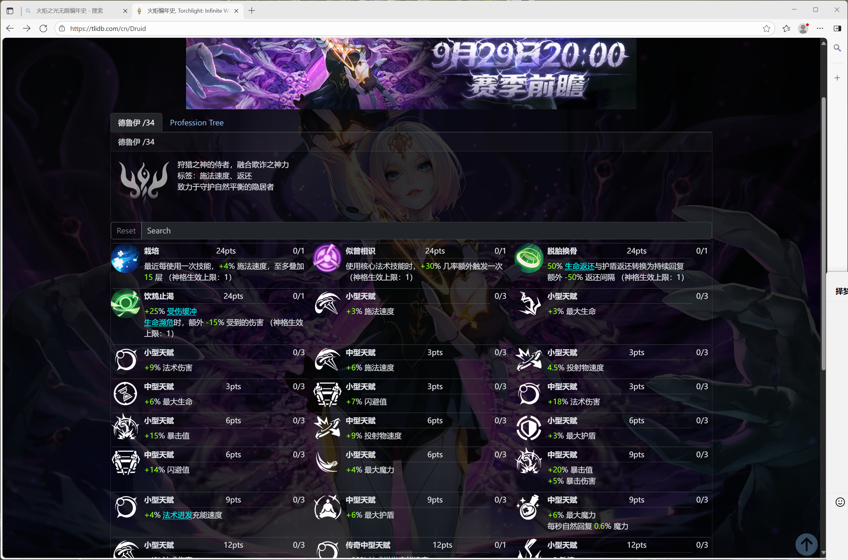 天赋:稳打 栽培 逃脱大师 凝河头最高要求300 天赋小点大约加108施法速度 迸发充能速度能大约加104 假设敏捷2400 德鲁伊传奇中型天赋,每40敏捷加1%施法速度 天赋+板子能拿120%施法 不算栽培60%