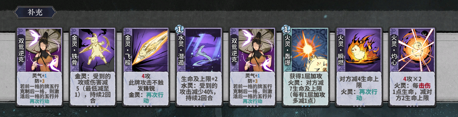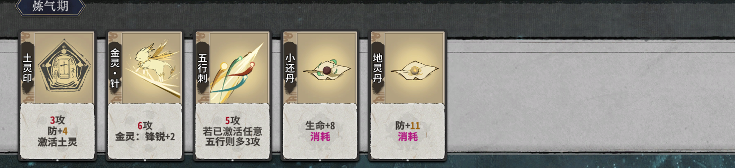 然后3-6轮就捡垃圾过度,第7轮卖牌上元婴拿双鸳。那第7轮怎么卖牌才能战力最大化呢,看道韵和先天。比如说我道韵了一个暗香并且我的先天不是金,那第7轮的时候我就得留金和火方便第7轮摆双鸳。优先卖自己先天和无属性的牌,多保留带有五行的卡才能最大化的保证第7轮的战力。