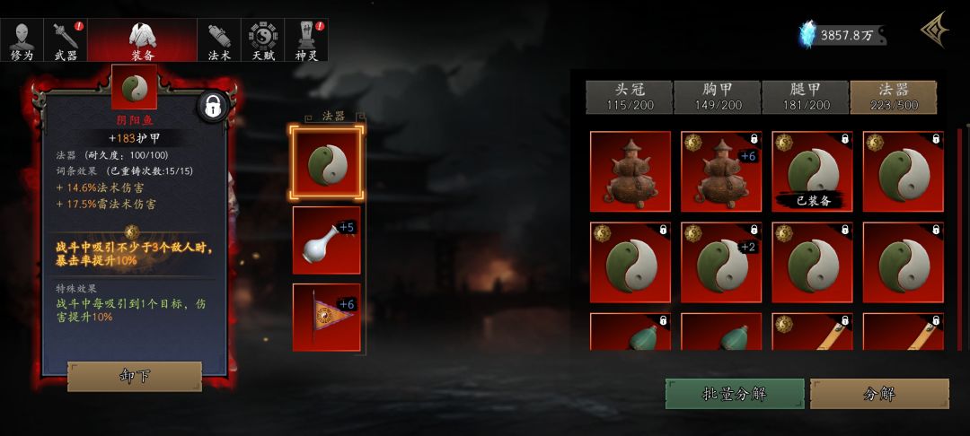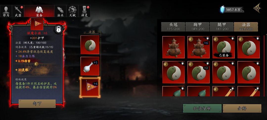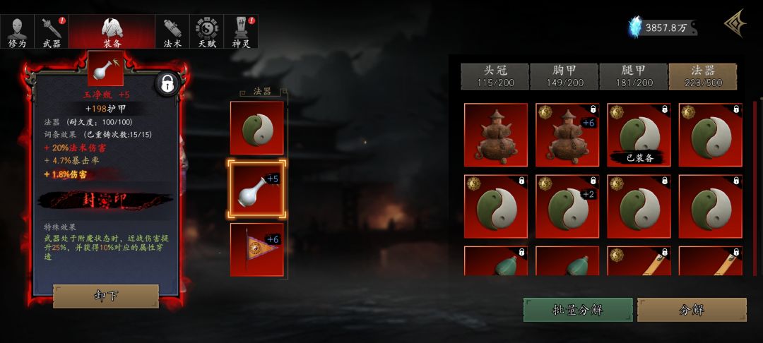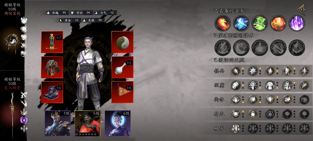 打吕惊尘时可以用近战封印流,打完可以在魂灯的战备换回法术流,火旋风在钟馗之前可以打满小怪的失衡条封印,装备推荐加法力和法术的