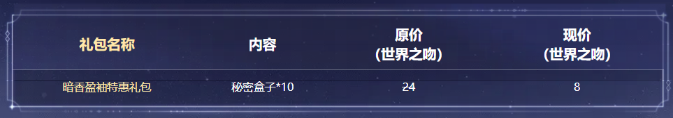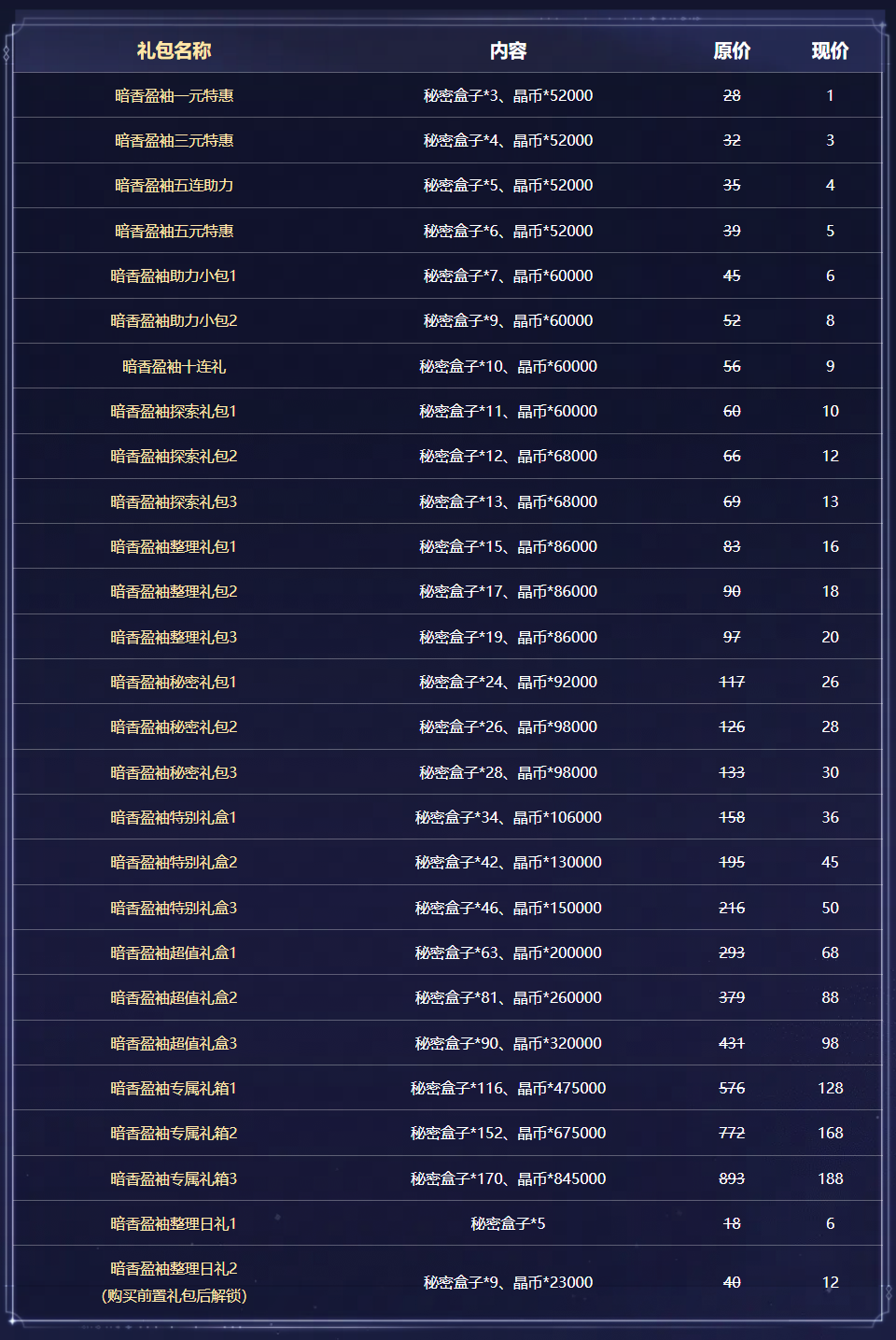 2. 【暗香盈袖光影之间】开启期间,同步回馈【秘密赠礼】。满足条件的玩家最多可得共计【125个】秘密盒子,【5张】秘密盒子翻倍券: