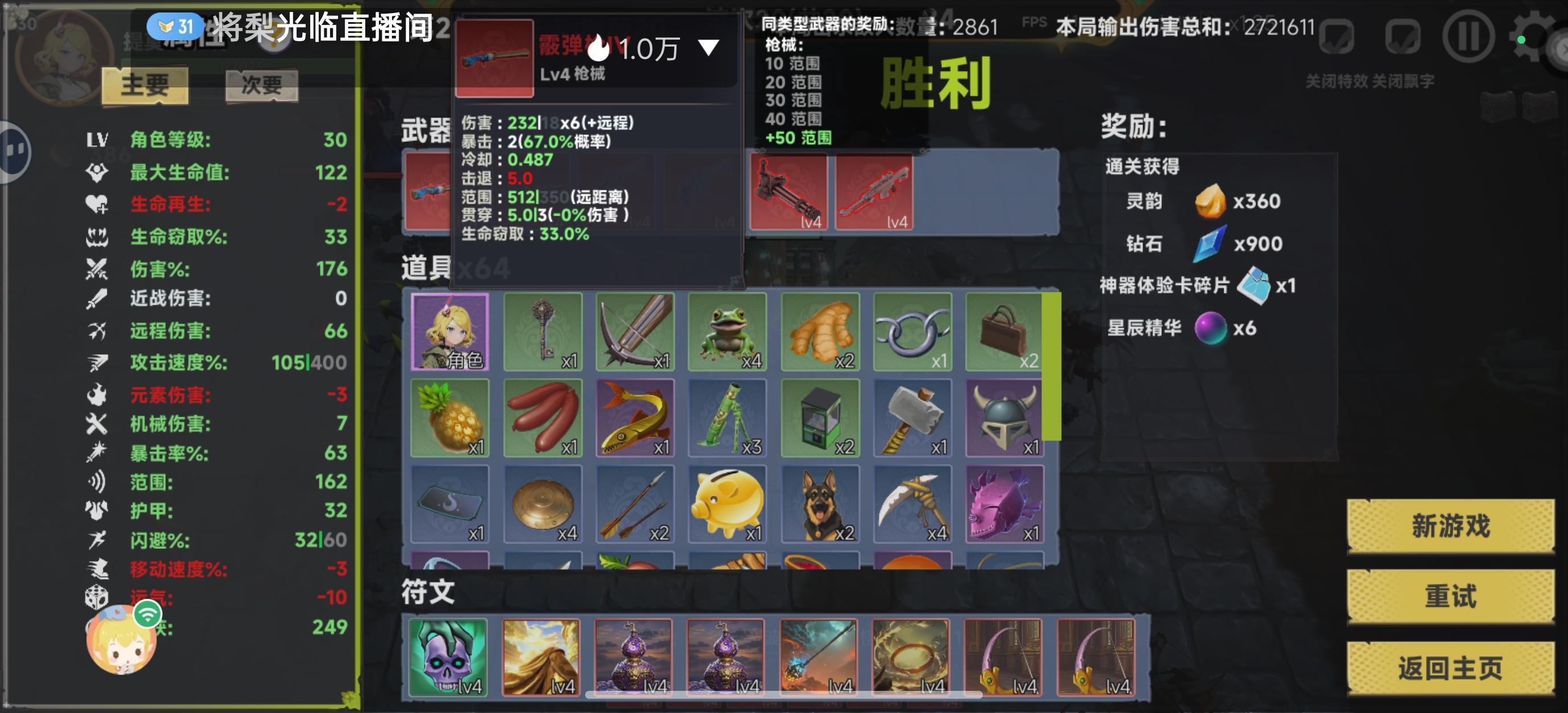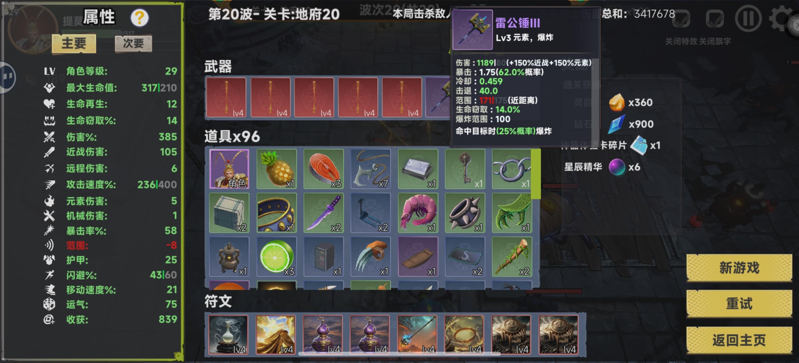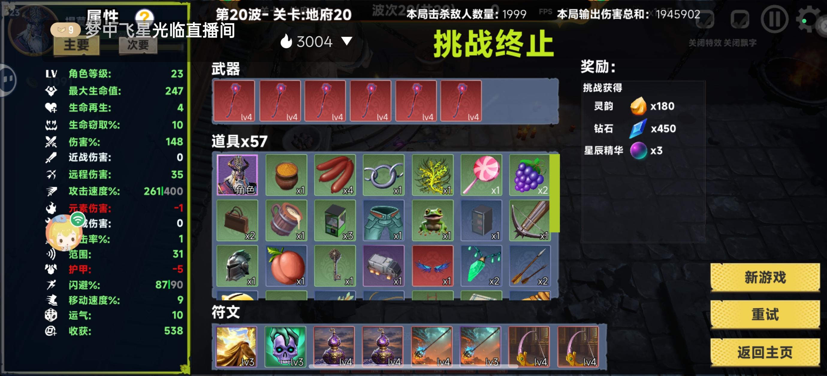 <西游肉鸽:杨戬的100种死法>游戏有3次复活机会,可以加速,20个关卡,完全无广告,全新武器系统和体验,很多西游角色提供提供不同流派和体验。