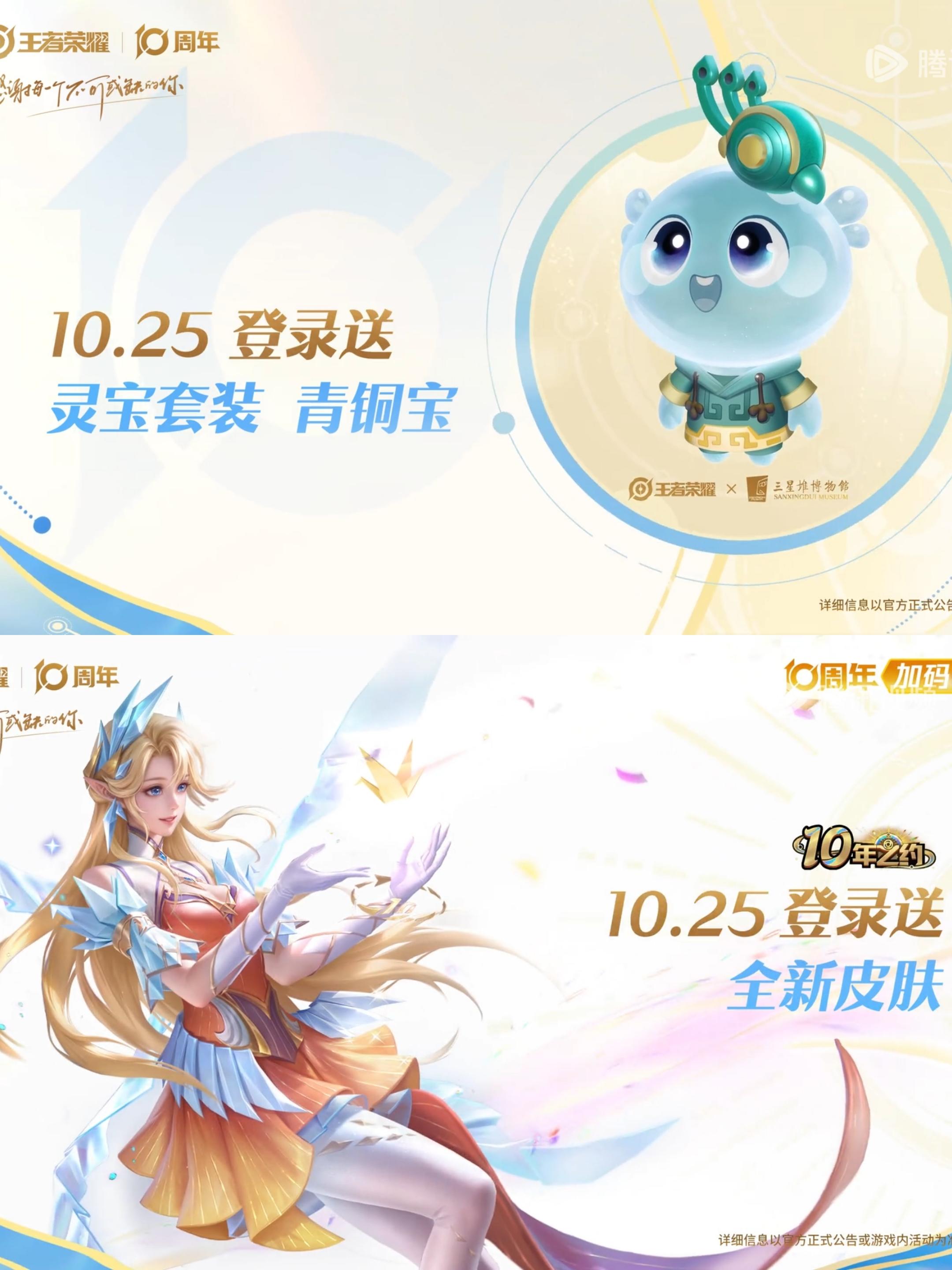 【10月25日十周年庆】小兵送上十周年福利预告省流版~送3000限时点券、积分夺宝30抽,10周年限定传说皮肤等丰厚福利~一定要记得,10.25十周年庆,登录就能领福利哟!