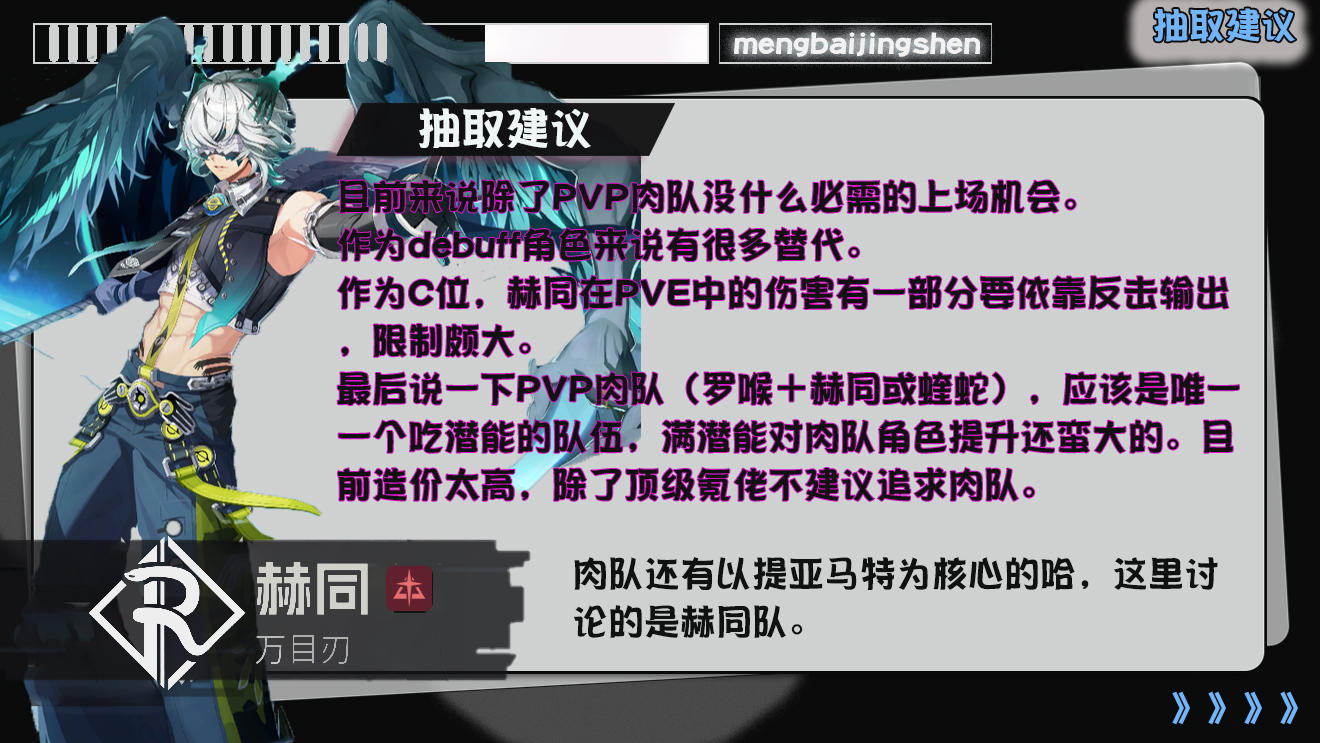 赫同在pvp肉队中的作用无可替代。