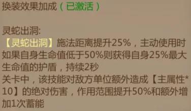 同张莺莺的换装一样,提升了技能的施法的距离并在生命值低的情况提供护盾。值得一提的是,在关卡中如果装备了高阶的物理套装,大招会附加额外伤害,并且释放后会得到攻击力的加成,大大提高了战斗力。