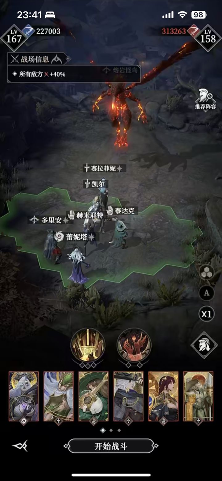 这关有好多bug,多试几次就卡过去了,一个是boss放第一个技能前(一定是差一丝能量的时候)放召唤恶魔会使boss技能丢失,早一点或晚一点放都会打到断荆身上,然后恶魔一定给矮子,出来的恶魔有概率会让boss一直打不中,别人有视频,就是这个阵容,可以去看一下