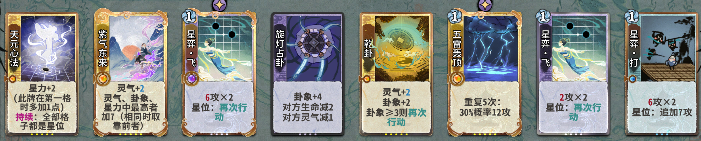 其余七星阁好用及通用好用的就不一一提及,小心厄劫降级乾卦导致卡组带星弈飞/星弈断/护体丹时卡灵或乾卦不再动。