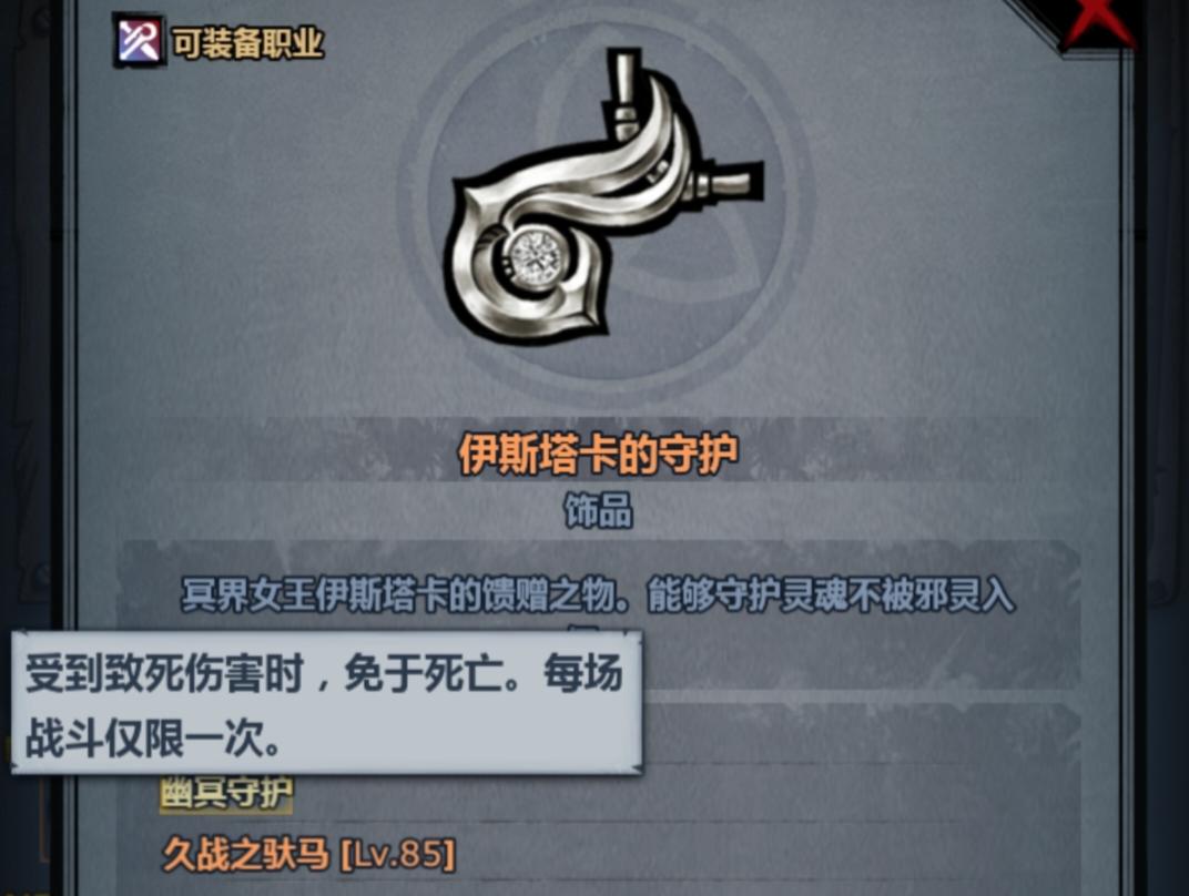启明星就不用多说了,伊斯守护孪生姐妹,免疫一次伤害比免疫致死伤害一次稍弱一丢丢,原理同上,推荐度⭐⭐⭐⭐