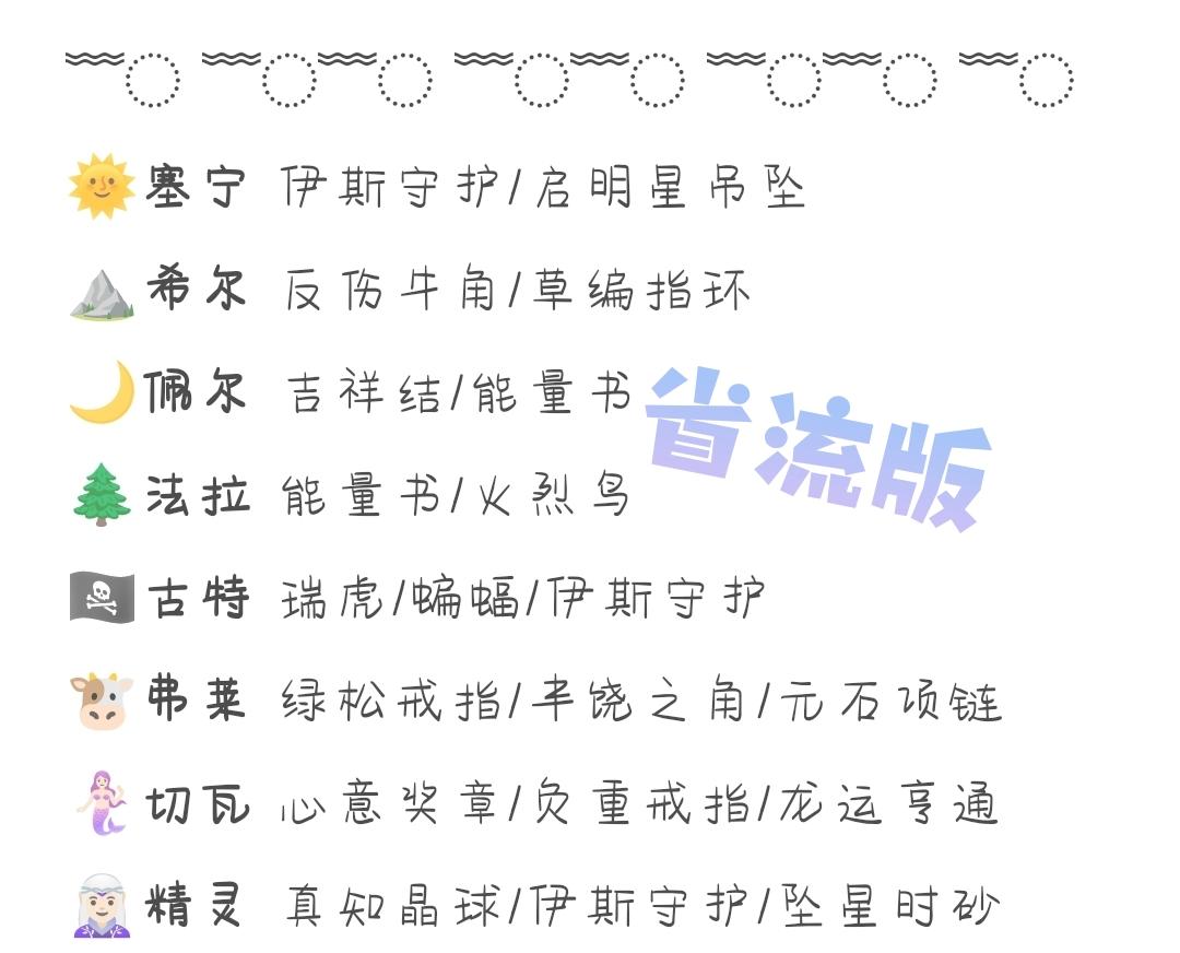 本帖含详细推荐攻略介绍,先放一张省流图镇楼~(至于为什么每个圣物都有2~3种选择是为了照顾平民非氪金资源少的萌新,让他们有更多选择,不用非强制用什么饰品)