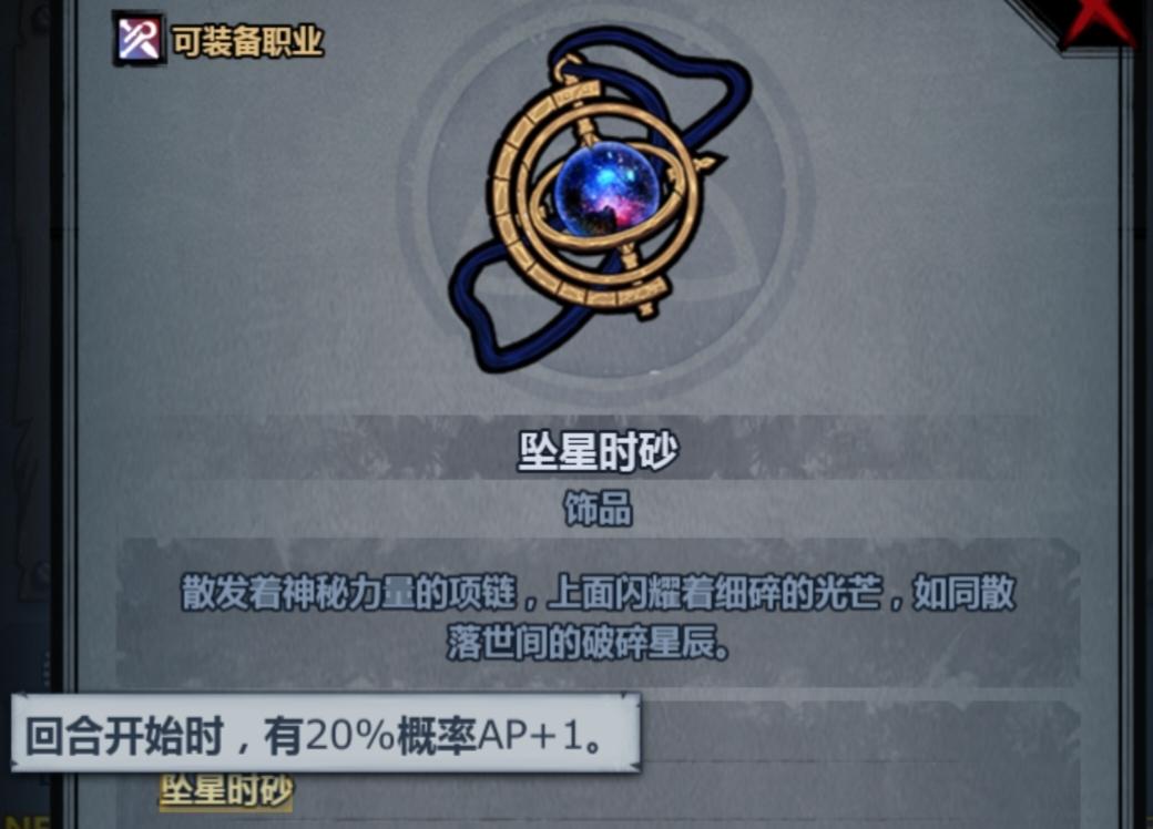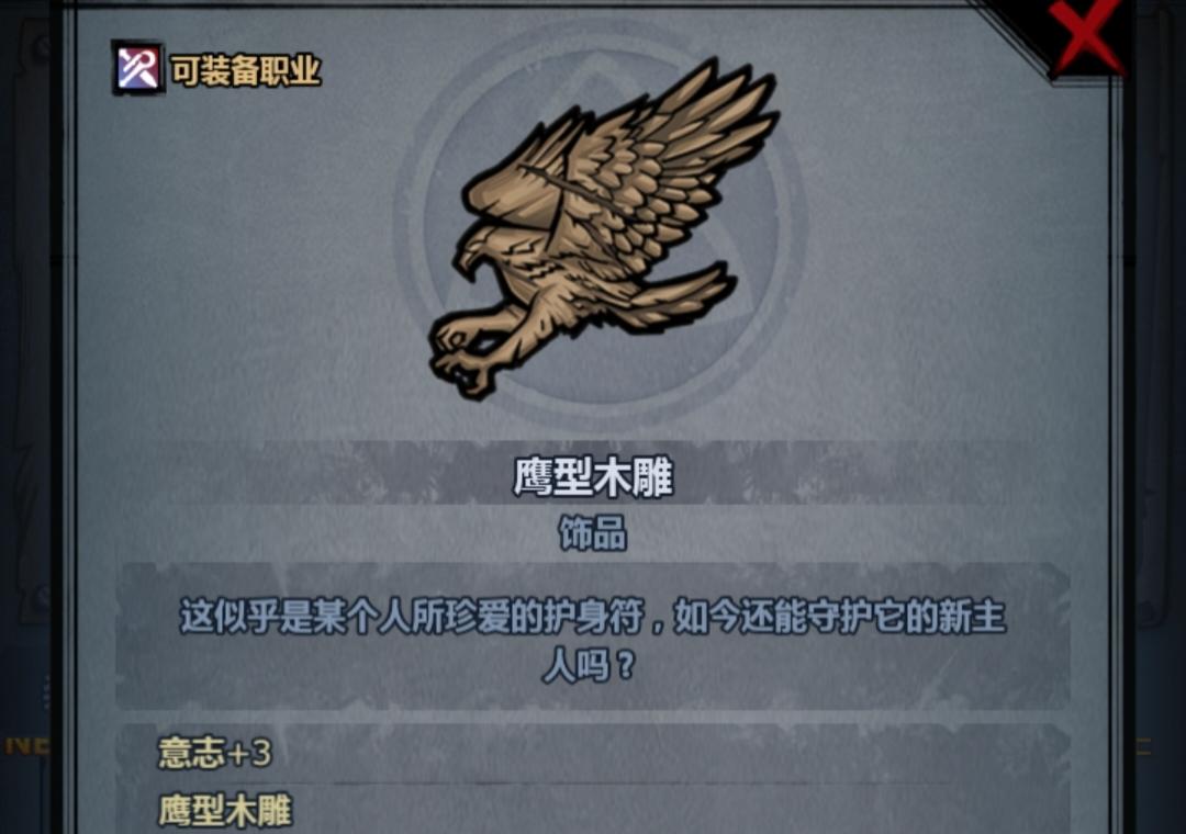 木雕(偶尔卷分用 所以不推荐做圣物这里只是介绍这个饰品)此饰品效果为被动受致死伤害,邻近一名单位➕1行动次数,每场战斗限1次。