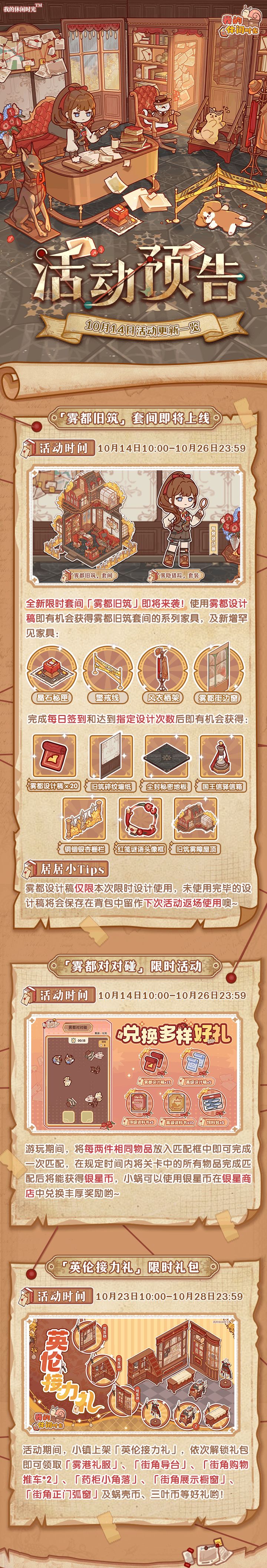 🔍限时活动「雾都对对碰」即将开启!完成相应物品匹配即可获得银星币兑换雾都设计稿、高级设计稿等丰厚奖励,累计可得雾都设计稿*15!还有限时礼包「英伦接力礼」即将上架,更多精彩等你来亲自体验~