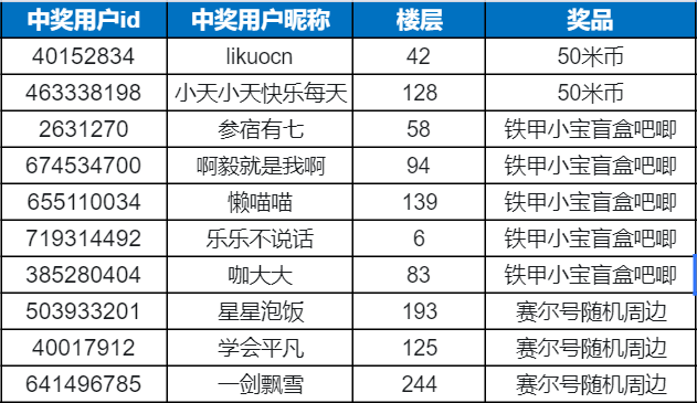 《赛尔号》x《铁甲小宝》联动即将开启!活动开奖啦!感谢大家的热情参与!!让我们恭喜以下获奖的赛尔们!(鼓掌!~(‾⌣‾~)
