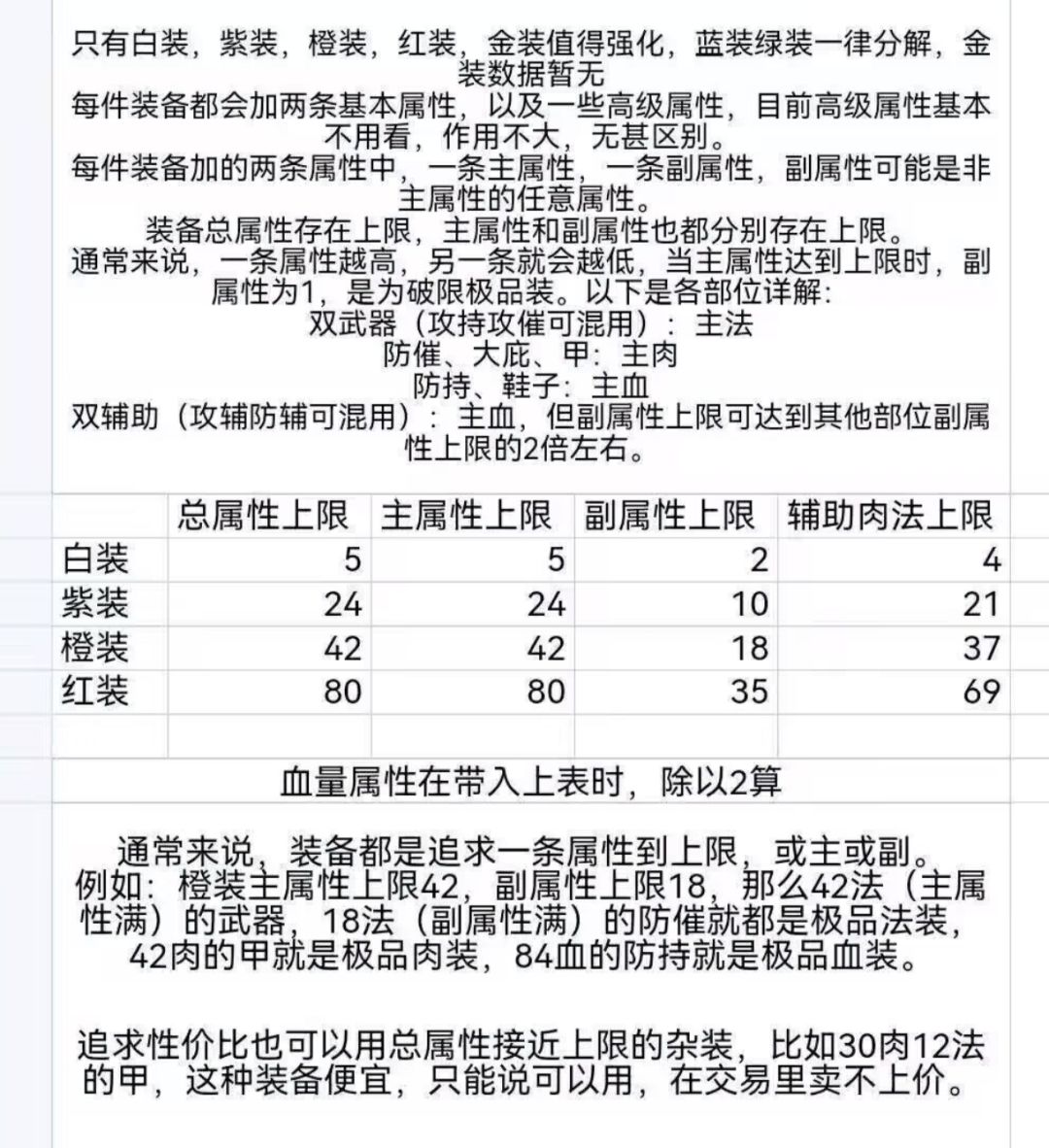 以下是装备属性上限,图不是我做的,可以参考一下