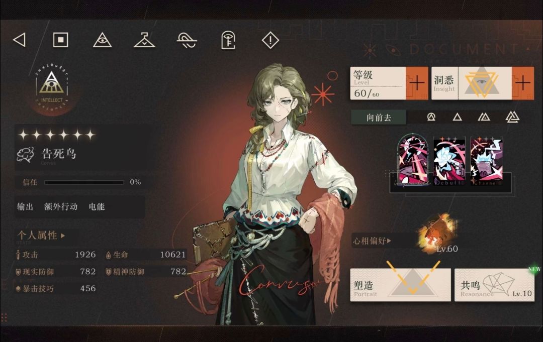 四、养成核心:心相&共鸣 1. 心相选择 🔝 首选: 心相推荐专武·生者的苦旅:满幅提供380攻击、16%暴击,额外提升24%仪式威力和18%创伤,告死鸟毕业心相。
