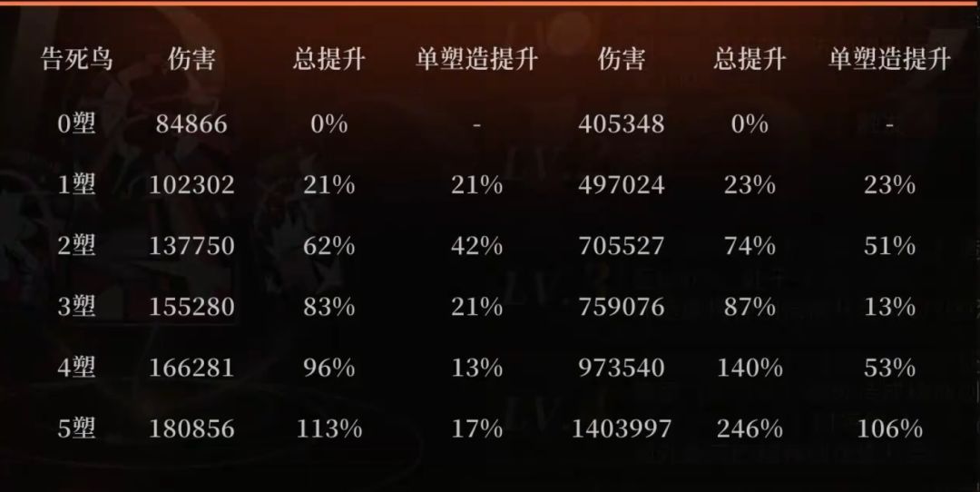 🌟 塑造建议:止步2塑!0塑可满足基础输出,2塑能大幅提升伤害(前两塑合计70%-80%提升),更高塑造性价比低,新手优先留存资源养辅助或备战限定。