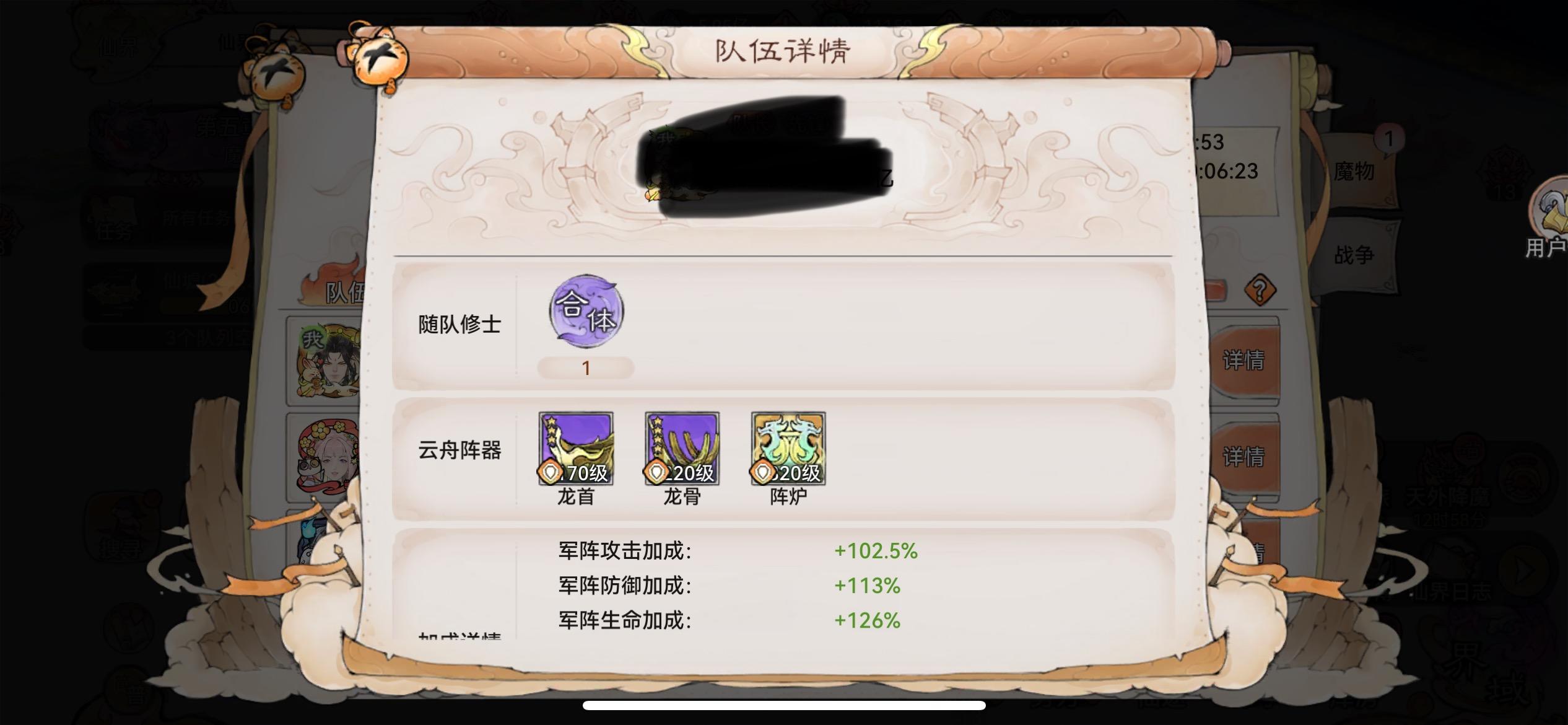 萌新入坑70天,号刚到手的时候阵器只有紫色322,所以出现了低阵器,高战力打仙墟的情况。目前这套阵容适用于各种仙墟和魔界(在用紫船的情况下魔君、魔将的排行都在前10,一般都是7左右)