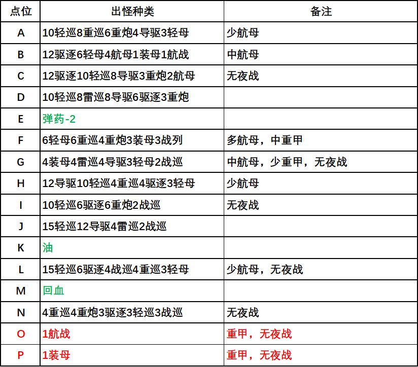 两条路线除a点外其余四点均为纯日战,利好航母,且道中无重甲。底关BOSS均为重甲且血量较厚,因此本期最优配队是前排凤棲轻巡+后排鱼雷航母。