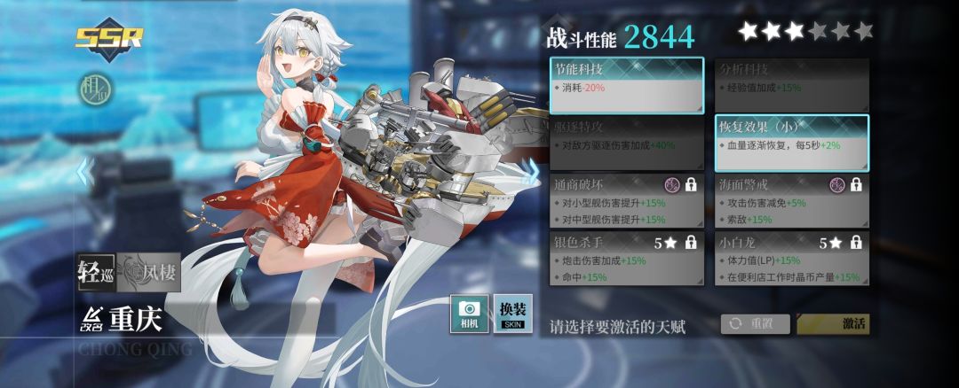 又因为两艘up船至关重要的回血天赋需要三星才能点亮,因此前期目标为获取一艘三星重庆。这里给出过渡配队: