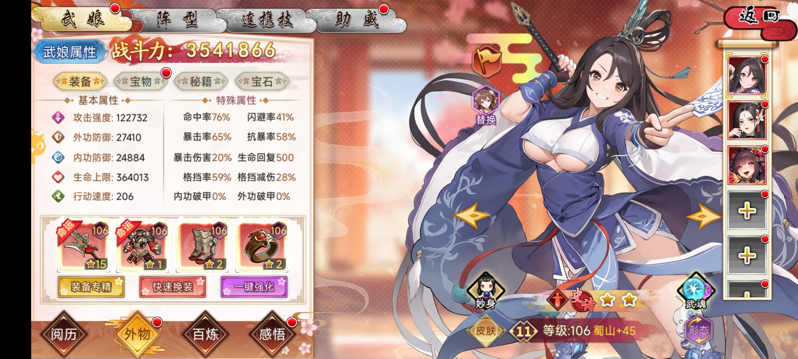 无论玩的是蜀山、日月还是天鹰,都只上1个主力,最多上2个,其他丢助阵。因为很多角色会反击,比如日月受到攻击会反击,炮灰多摸一下就让自己被人家主力多揍一下,根本没必要。在角色-百炼-命运中可以吃材料卡,永久激活缘分,不需要上阵就可以激活的。