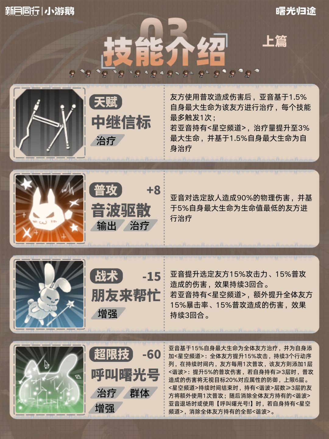 【基础属性】【门阶认证】 【技能介绍·上】【技能介绍·下】 【卡带推荐】【阵容配队】 本图文攻略由本人“小游鹅”一人制作,素材源自游戏官网