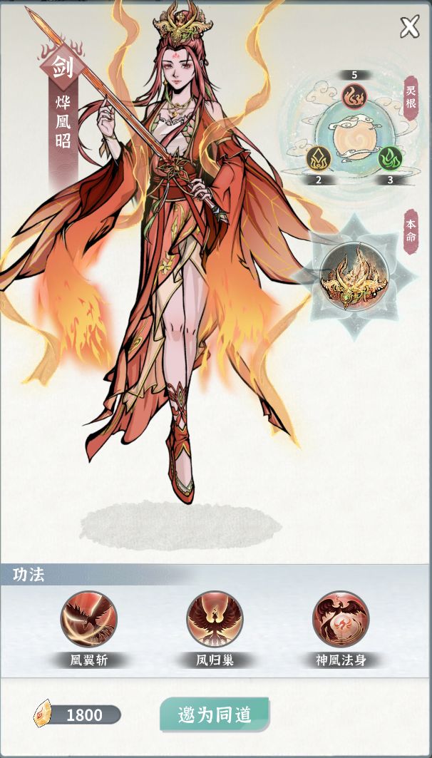 火剑烨凰昭定位是:主打燃烧方式的输出角色,被动光环可以让所有队友打出的火系伤害直接触发敌人的燃烧效果。