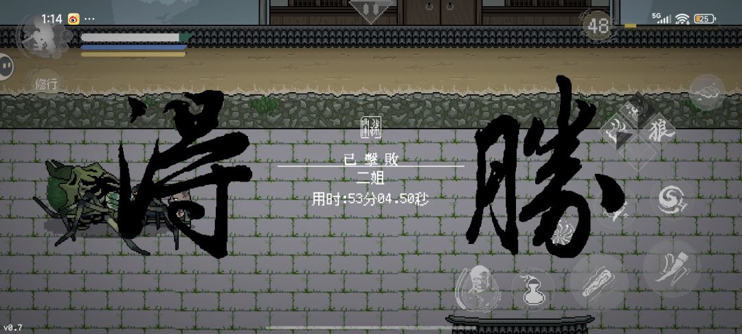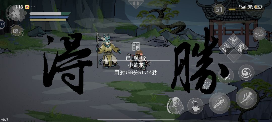 (知识点4:打架期间,如果感觉自己打的不顺畅或者放技能前,你可以尝试再点一下修行,可以直接中场暂停)