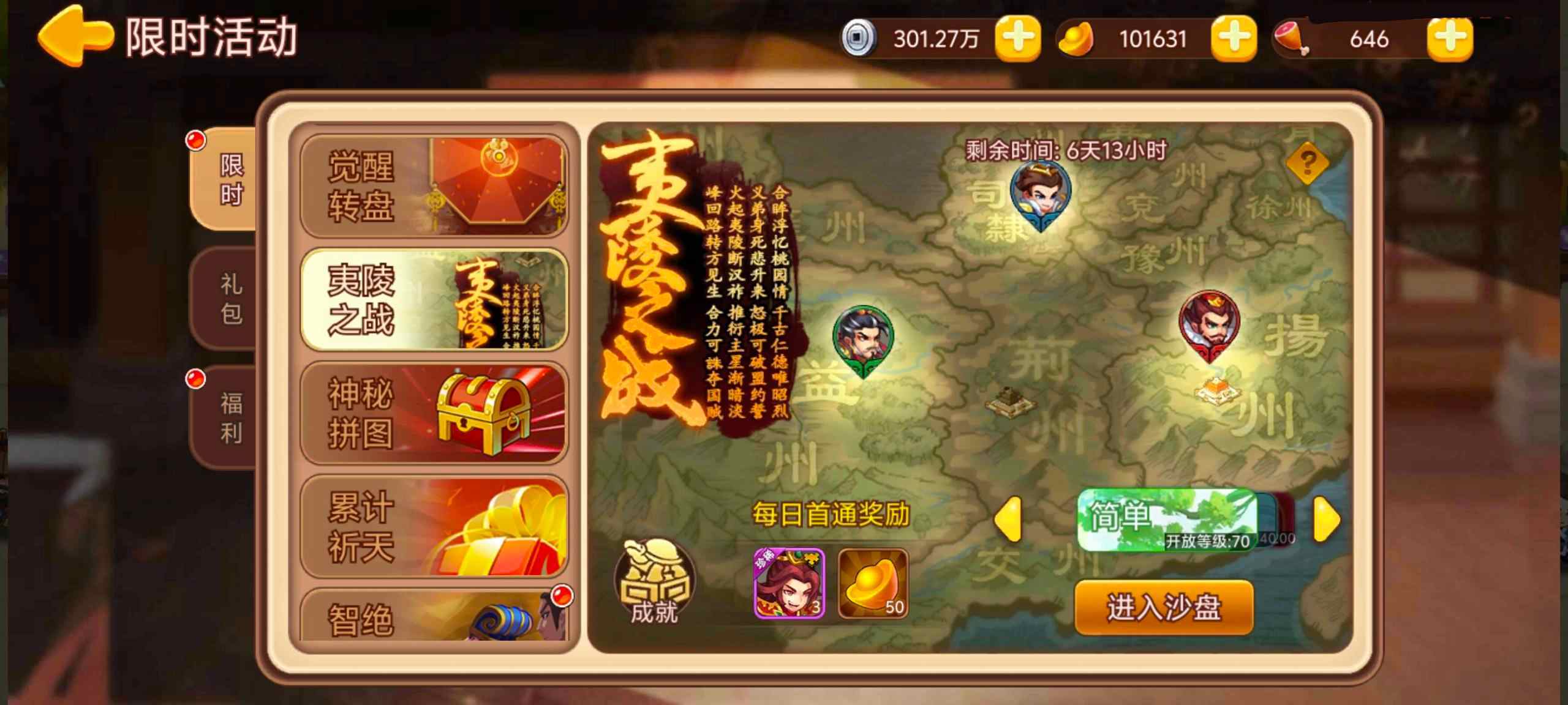 活动内容:活动期间开放“夷陵之战”限时副本,每日首通获得奖励。