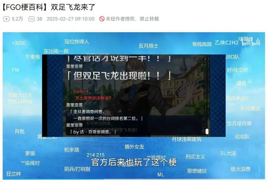 现在这个双足飞龙梗不仅玩家在用,连《FGO》官方也会拿来自我调侃。