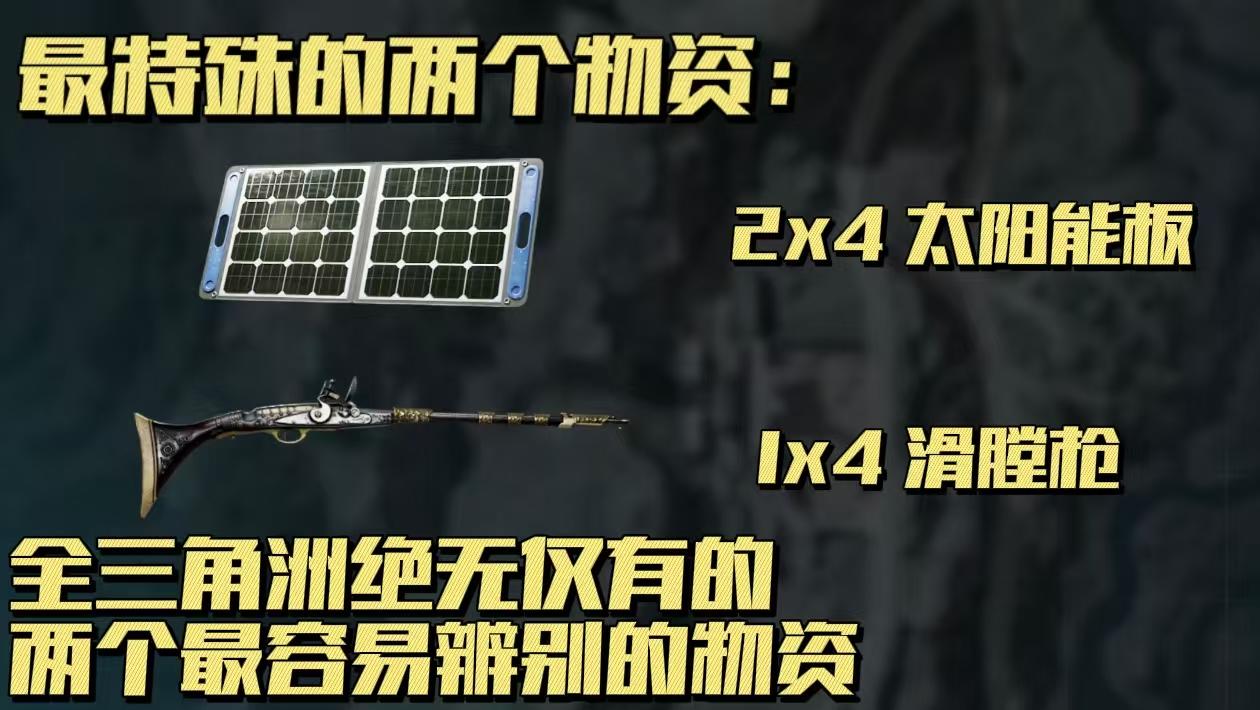 说到通过格子数目来判断有无出货就不得不提最轻松就能辨别的两个物资——滑膛枪和太阳能板,一个是1*4的格子布局,另一个是2*4的格子布局,这两个格子数是全三角洲最独一无二的的,所以看到这两个检索布局是美美收下还是扭头就走大家心里也有判断了。