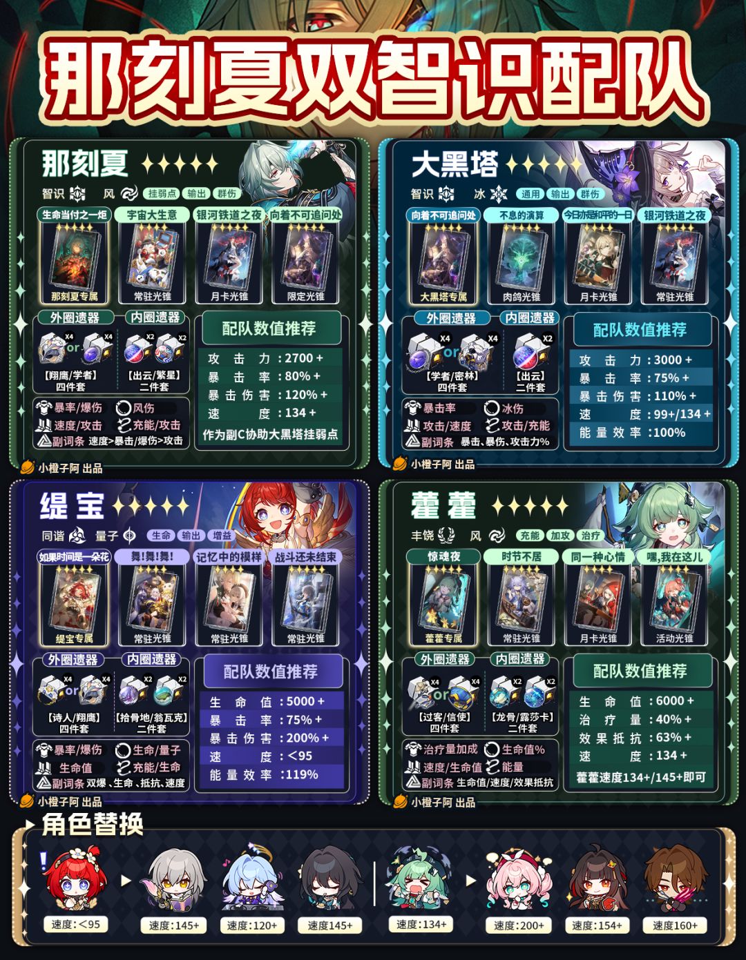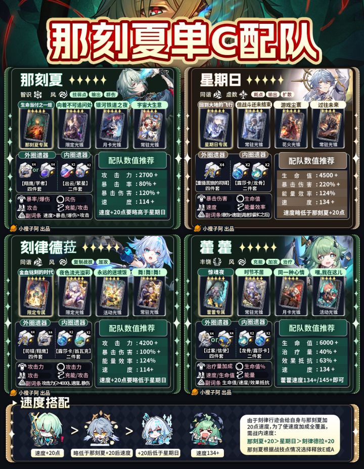 那刻夏复刻在即,橙子在这里做了几张那刻夏配队解析,那刻夏配队整体就是单C与双智识配队。