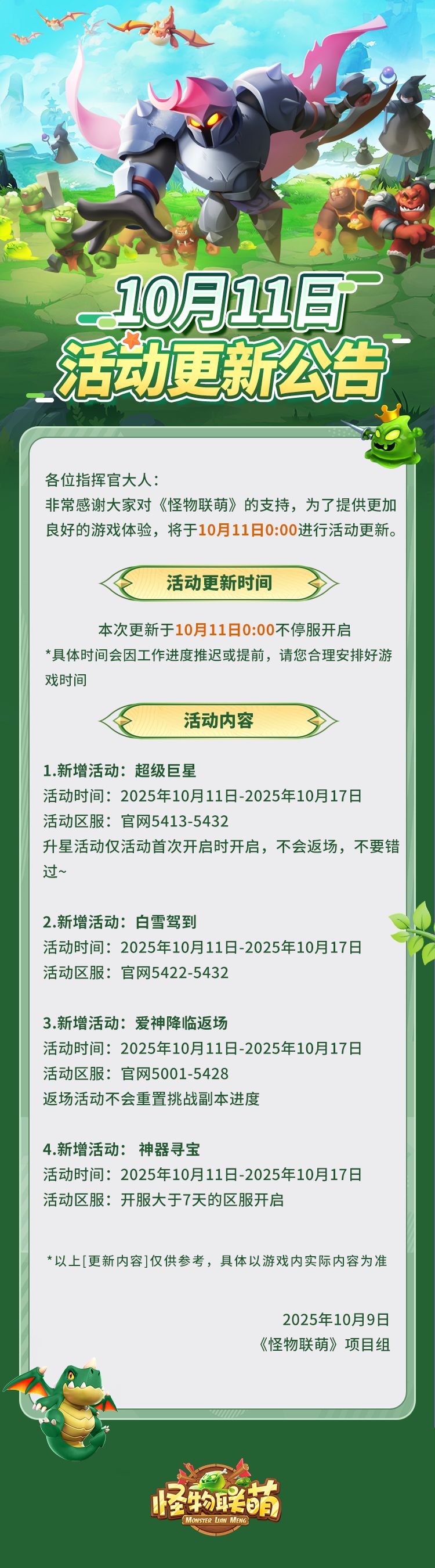 10月11日活动更新公告