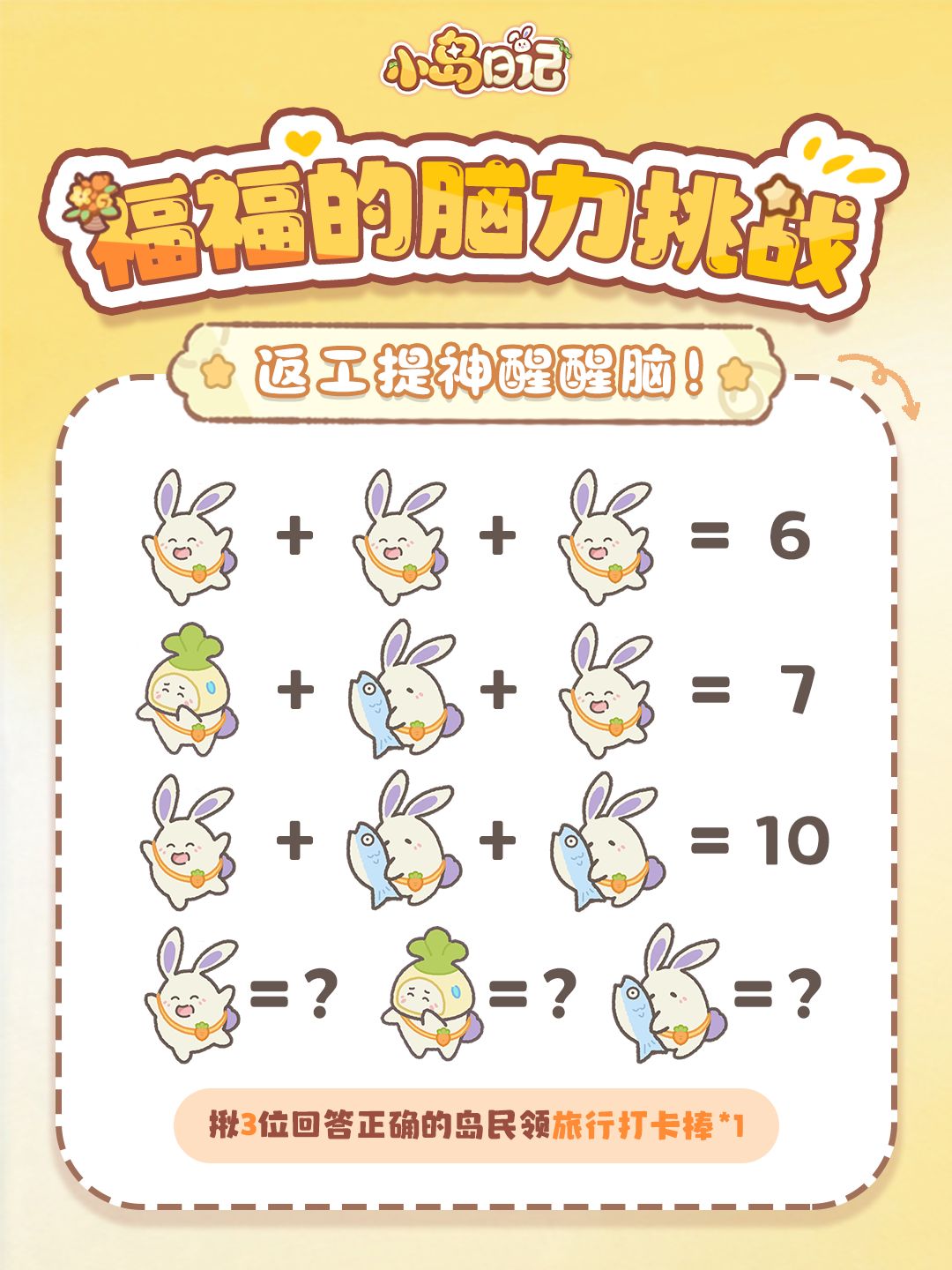 所以福福特意准备了一场脑力唤醒挑战,帮大家把状态找回来!