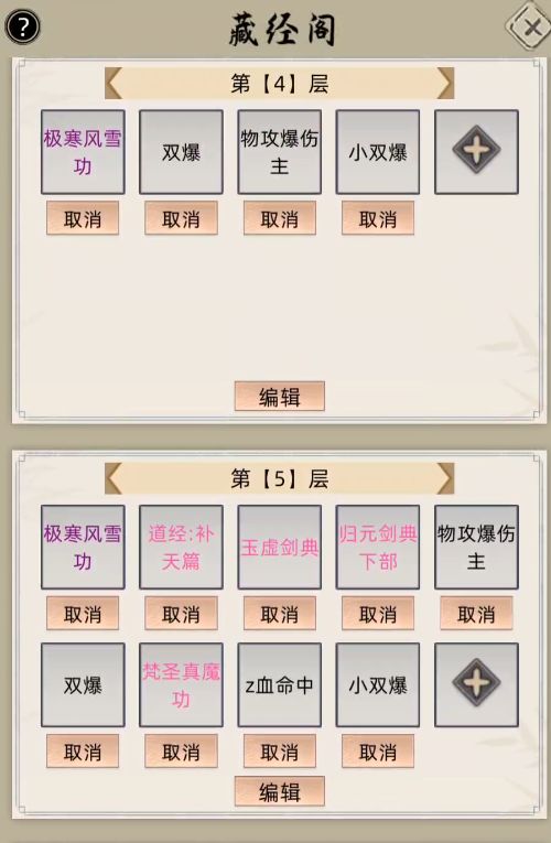 ----------划重点!!这一层不再增加更多紫色功法,到此为止我们只学习了一个辅修,后面增加高阶辅修如果超过五个的话会把紫色顶掉,而每个弟子的学习进度不一样,我们无法保证是哪一个紫被顶掉,所以总体藏经阁应该保持1紫+4橙/粉。